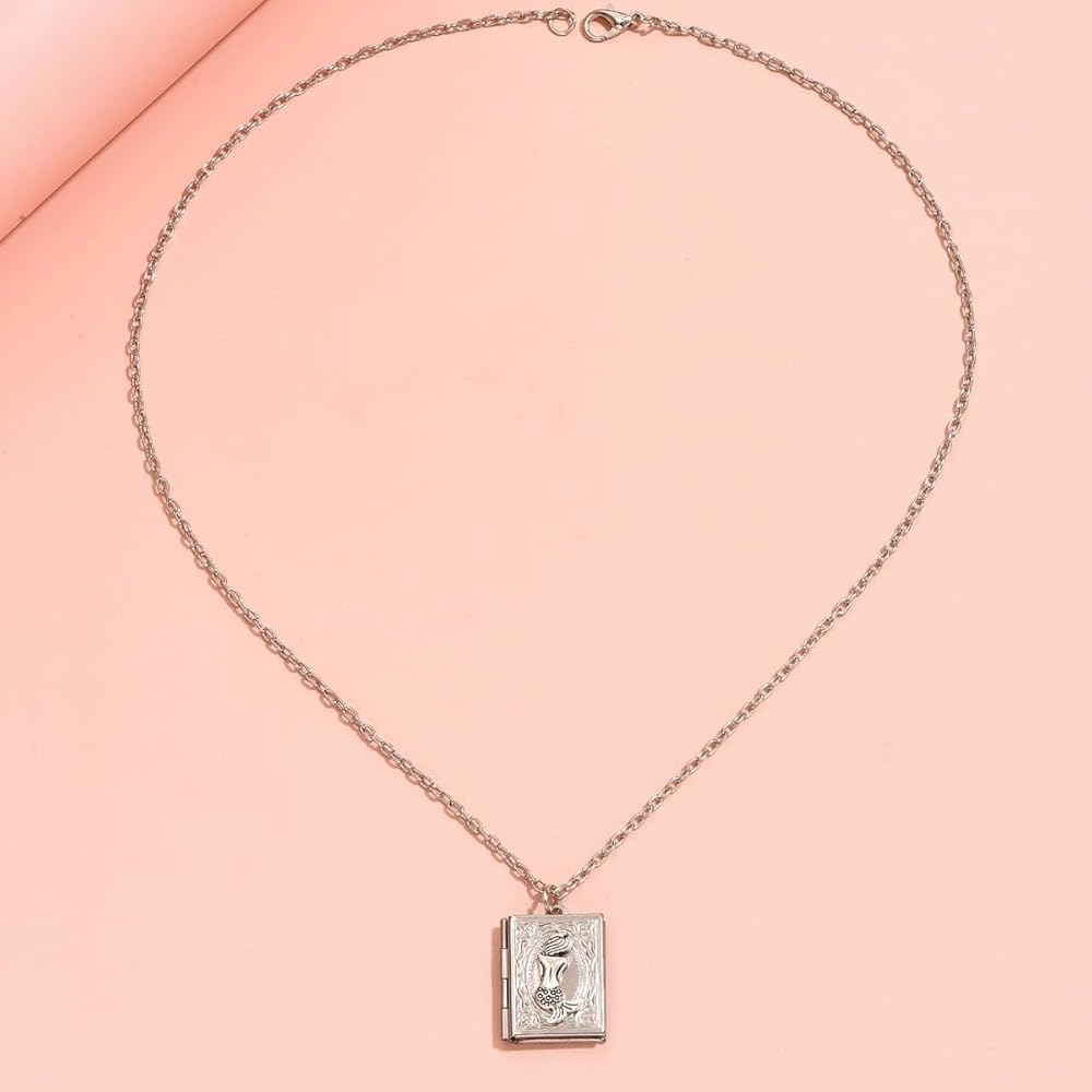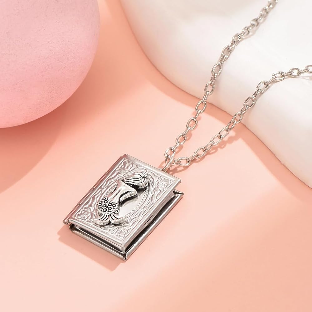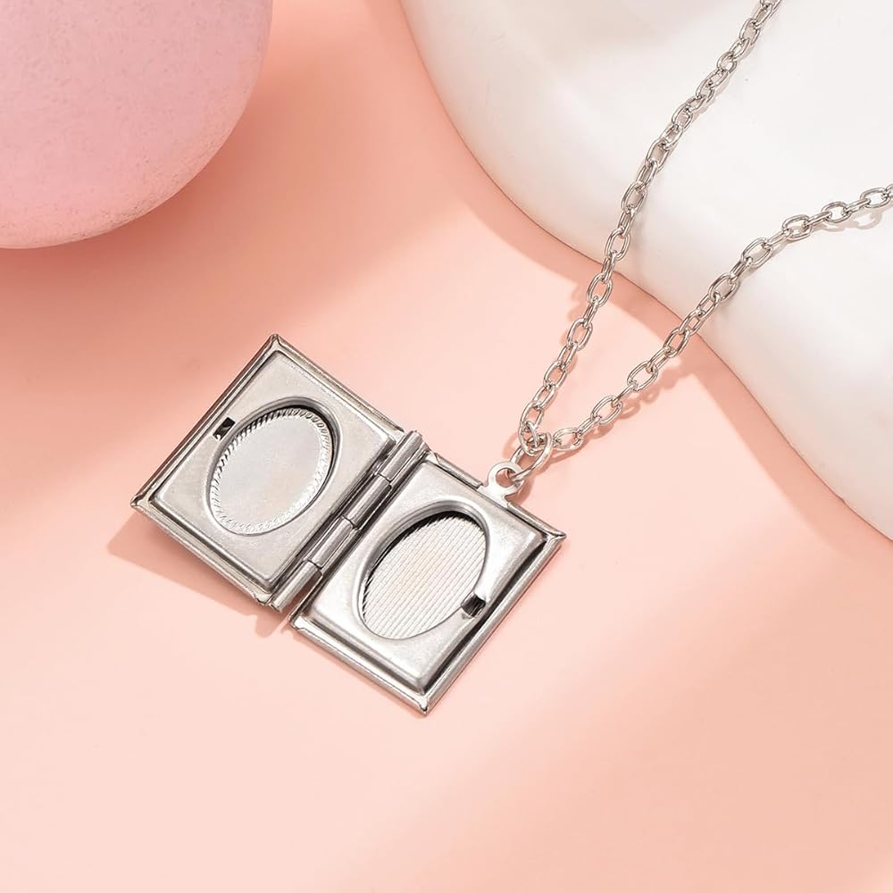 Photo Book Locket Necklace for Women Charm Choker Pendants that Holds Pictures Memorial Jewelry