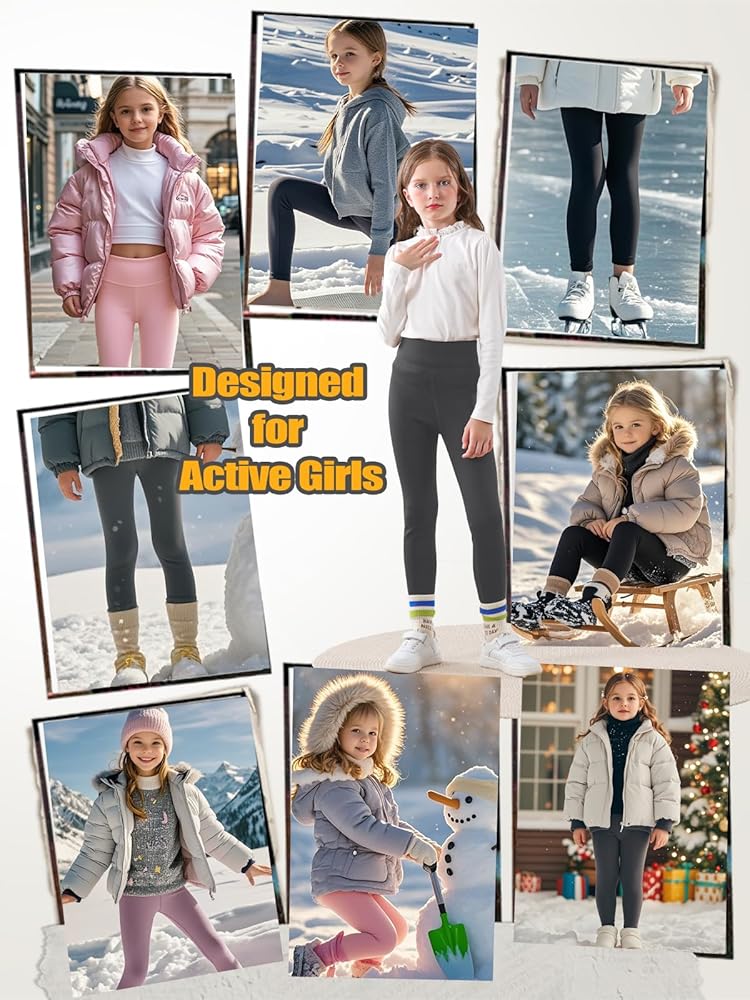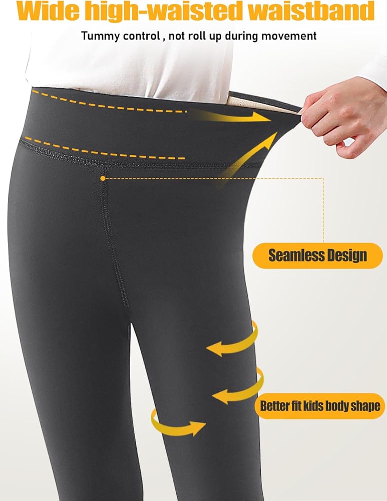 Designed for Active Kids: The high-waisted design ensures no slipping, making kids fleece lined leggings ideal for active girls. Perfect for ages 4-15, they offer flexibility and comfort, allowing for a full range of motion in outdoor play, running, yoga, dance, and hiking.