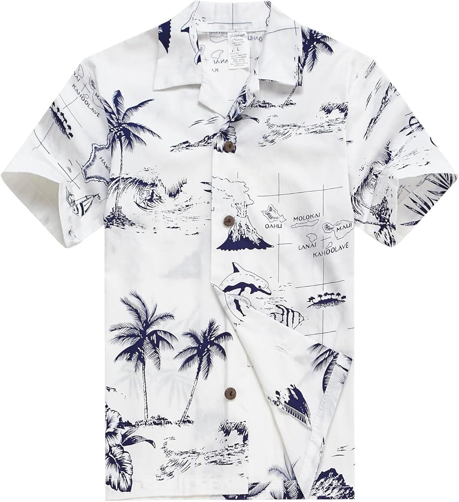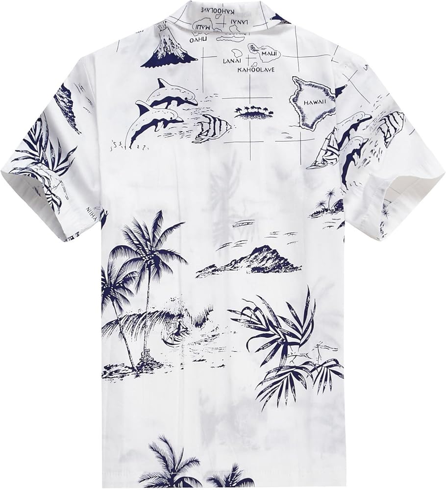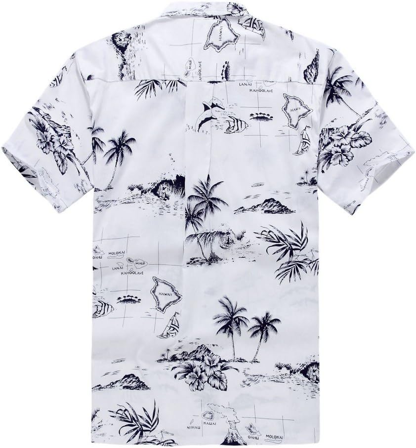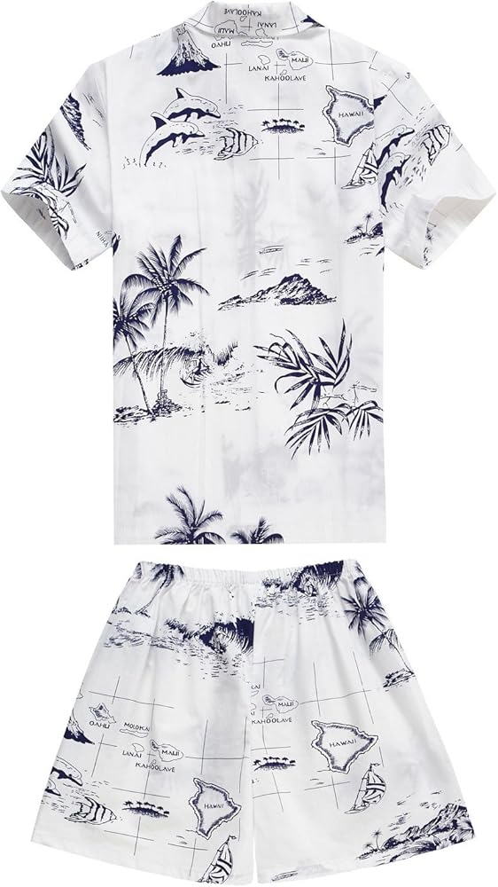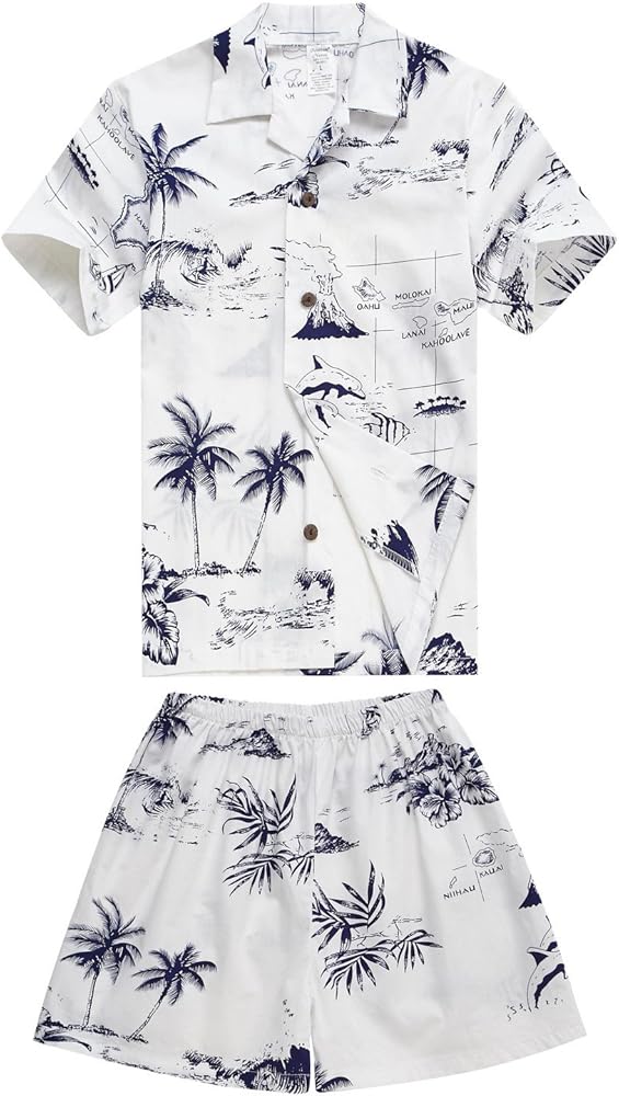 Boy Hawaiian Aloha Luau Shirt and Shorts 2 Piece Cabana Set in White Map and Surfer 6