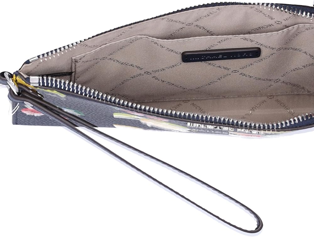 Silver Toned Hardware PVC Material Michael Kors Logo at Front Custom Fabric Lining Zip Top Closure Length (L): 10 in Height (H): 5.5 in Depth (D): 0.5 in