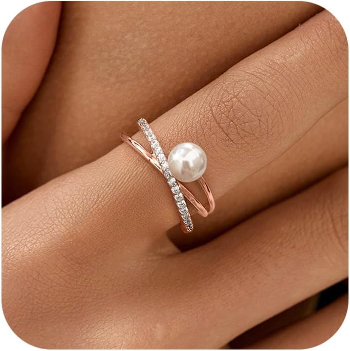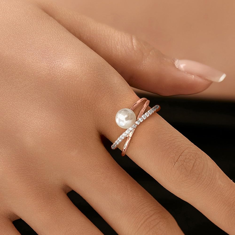 Premium Material: This X criss cross ring is made of 925 sterling silver and 14k gold plated. Nickel-free, Lead-free,Cadmium-free and hypoallergenic.the pearl is paved firmly. Tips: take off when sleeping, exercising, or doing other physically strenuous activities, sealed with separate storage in dry place and wear it with love & intention.