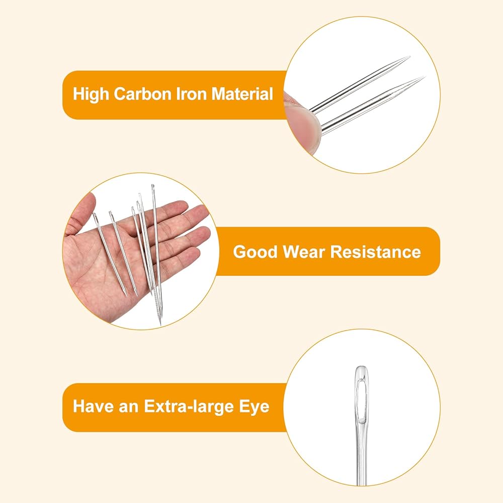 [Features] These large eye needles are extremely sharp and can easily go through a variety of thicker fabrics without leaving marks, keeping your items intact.