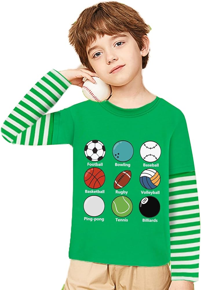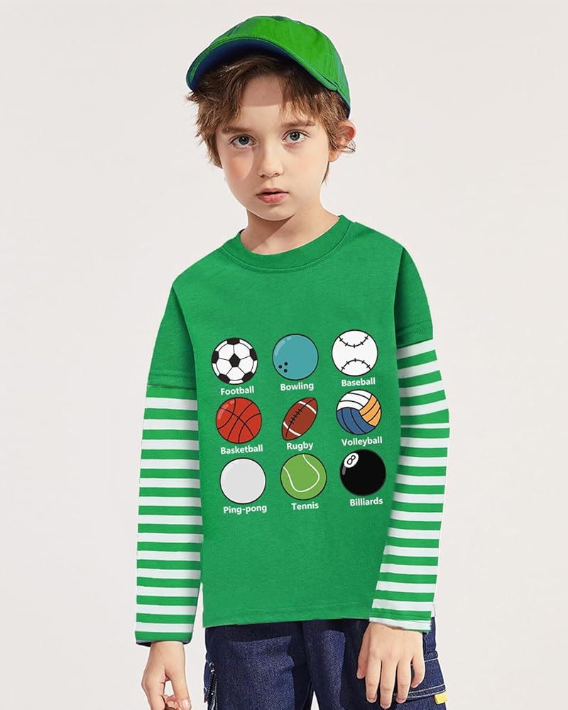 BOYS' LONG SLEEVE SHIRT: Boy's round neckline striped long sleeve shirt, printed with cute dinosaur excavator,digger train planet,ball game pattern,makes your baby look extra cute and charming in fall and winter!