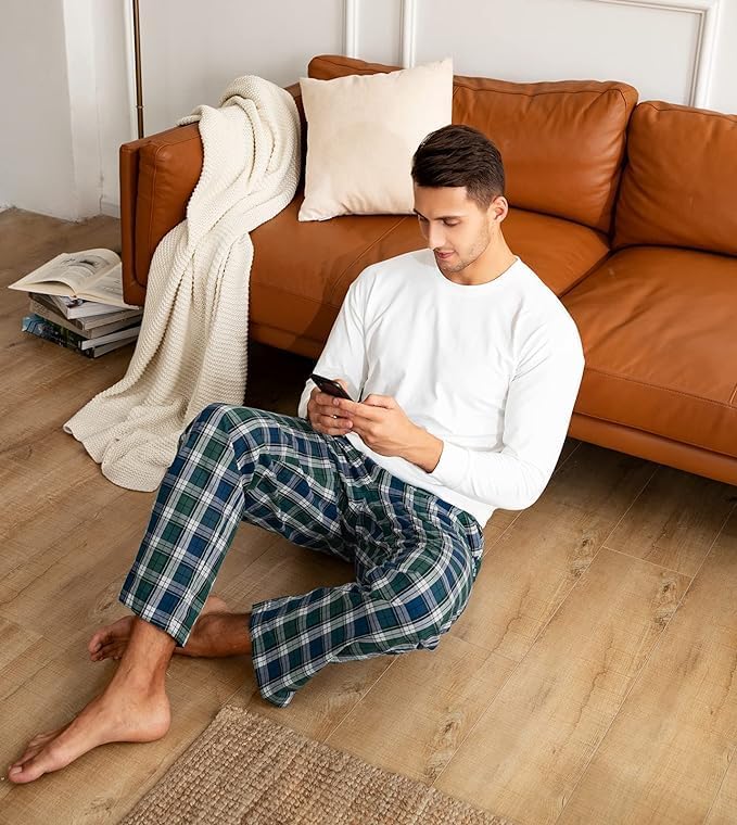 FUNCTIONAL DESIGN: Our pajama pants boast a simple yet stylish design, featuring a built-in elastic waistband and adjustable drawstring for a personalized fit. The woven pants are enhanced with a double-layered fly-front placket, adding a touch of sophistication. Wear them with confidence anytime, anywhere.
