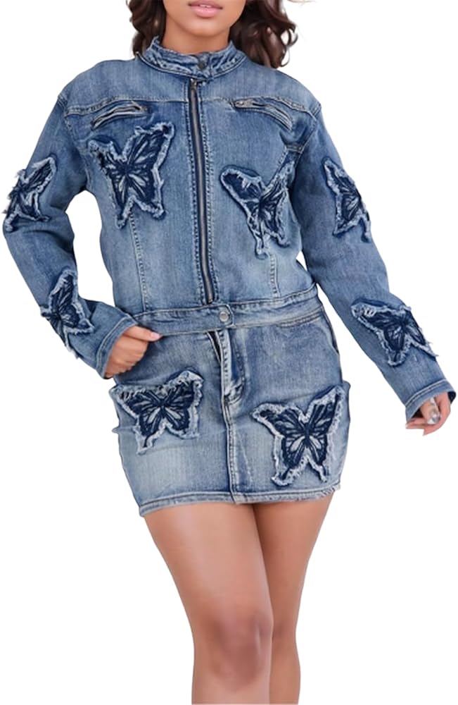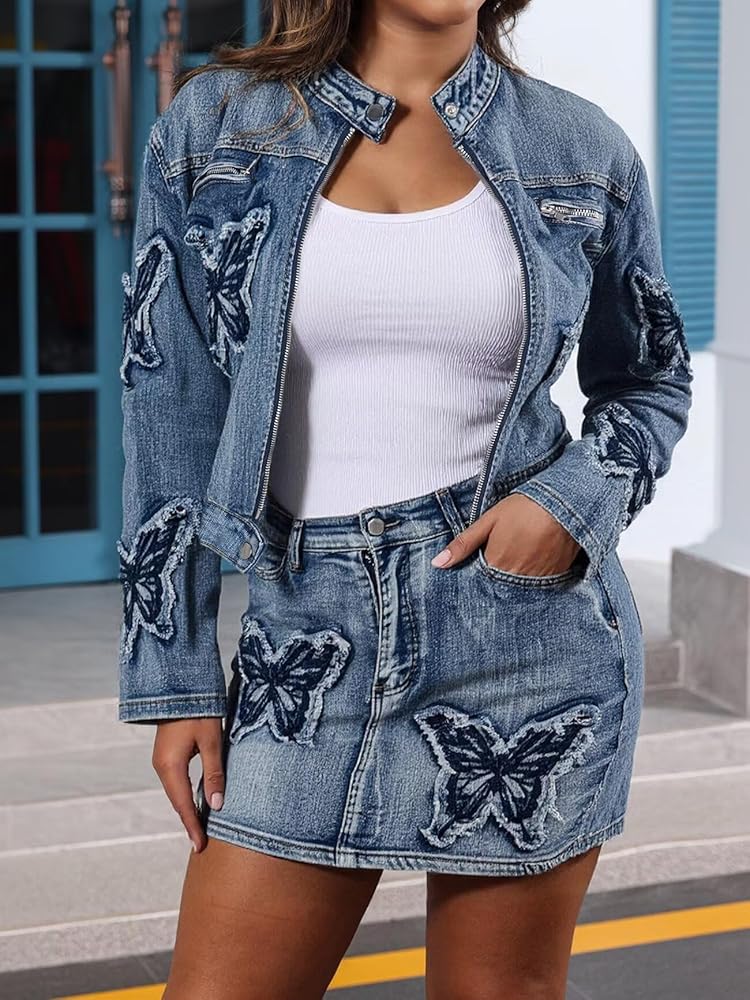 Matching: Easy to mix and match with different tops, boots, and heels. Versatile outfit for 4 seasons, perfect for a night out or casual activities. sexy 2 piece outfits for women/long sleeve crop top denim mini skirt/denim outfit for women