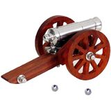 The cannon model with Dia.5mm steel balls and storage box for easy collection.There is a small hole at the bottom of the barrel, which can be inserted into the fuze. Fits 5mm steel balls.
