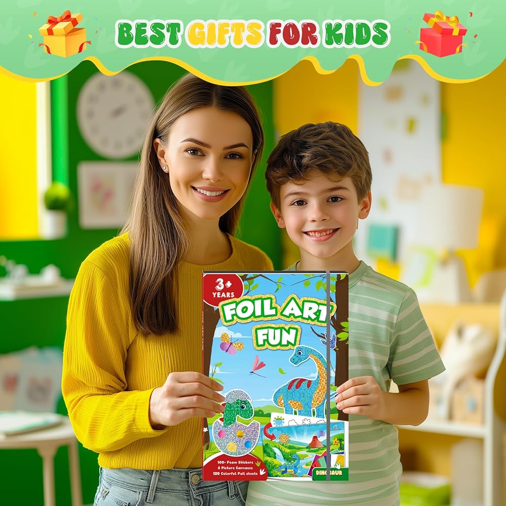 homicozy Art & Craft Activity for Kids-Foil Fun Dinosaur,No Mess Art Crafts for Girls,DIY Foil Foam Stickers,Creative Activity Kits,Kids Travel Toys,Gifts for Girls & Boys Ages 4-10