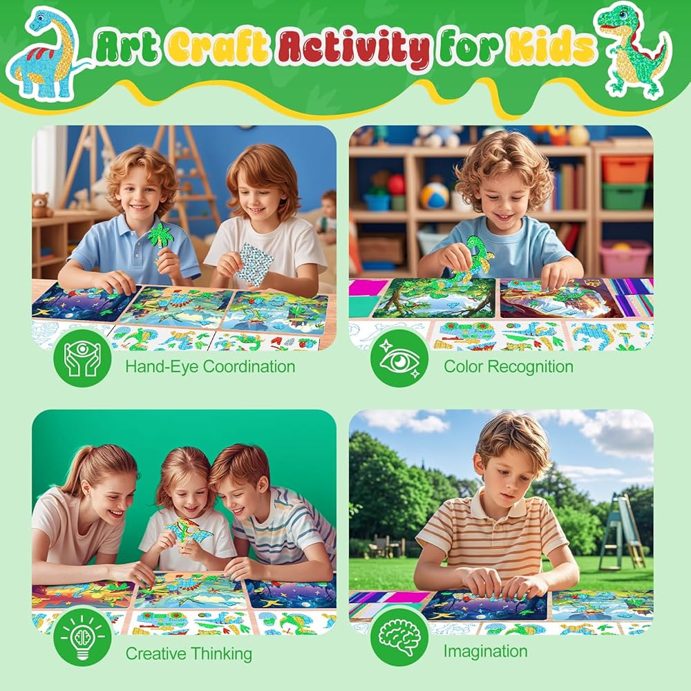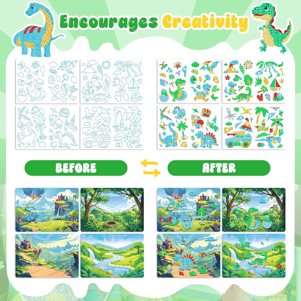 Easy-to-Use Foil Set: Select a picture canvas,adorn it with vibrant foil sheets using the provided stickers. This fun foil activity encourages kids to explore their creativity, allowing them to try with different colors and designs as they create their own themed scene pictures.