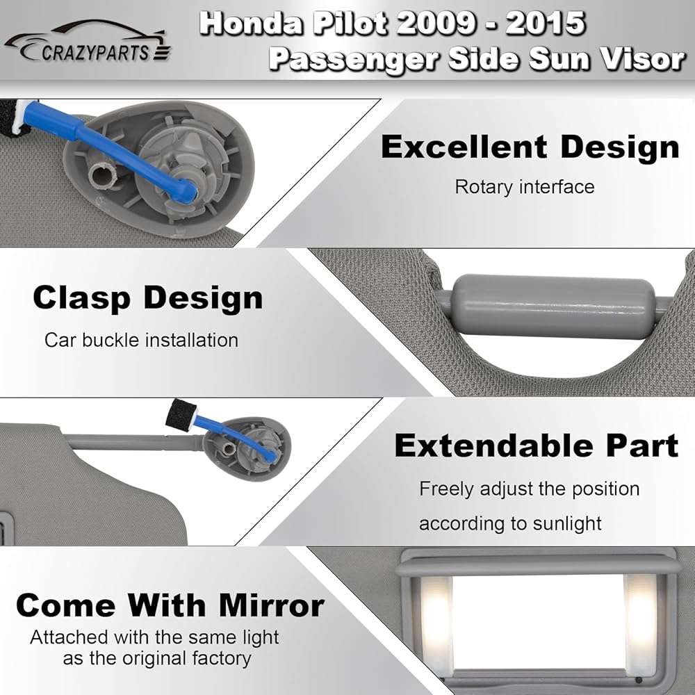 - Package Include: 1 x Honda Pilot Driver Side Sun Visor