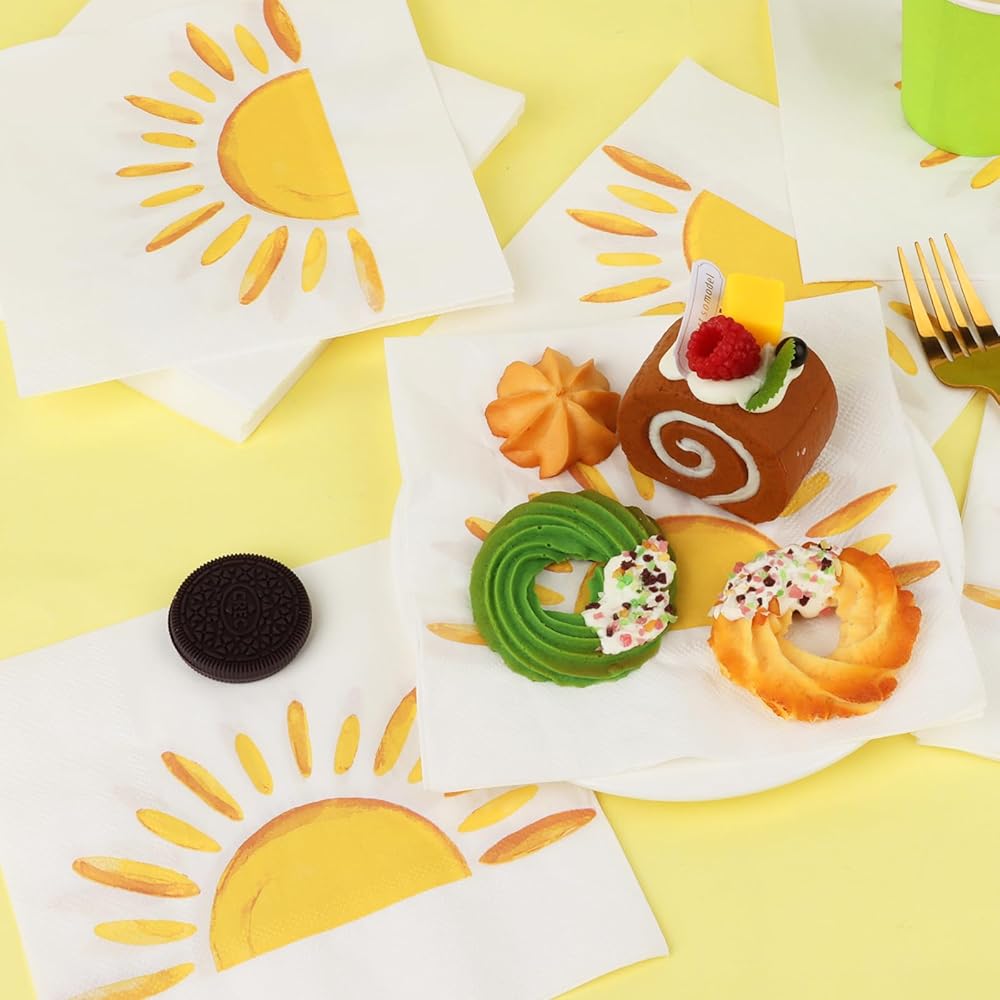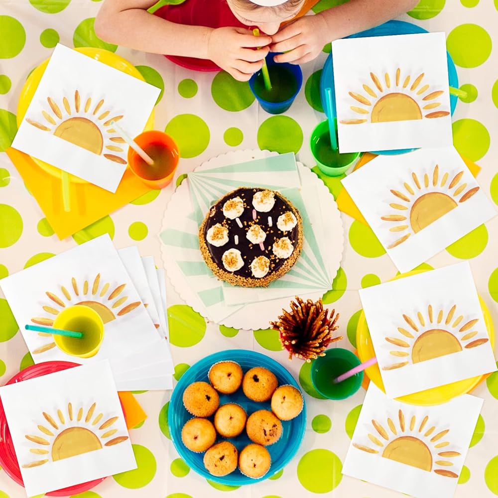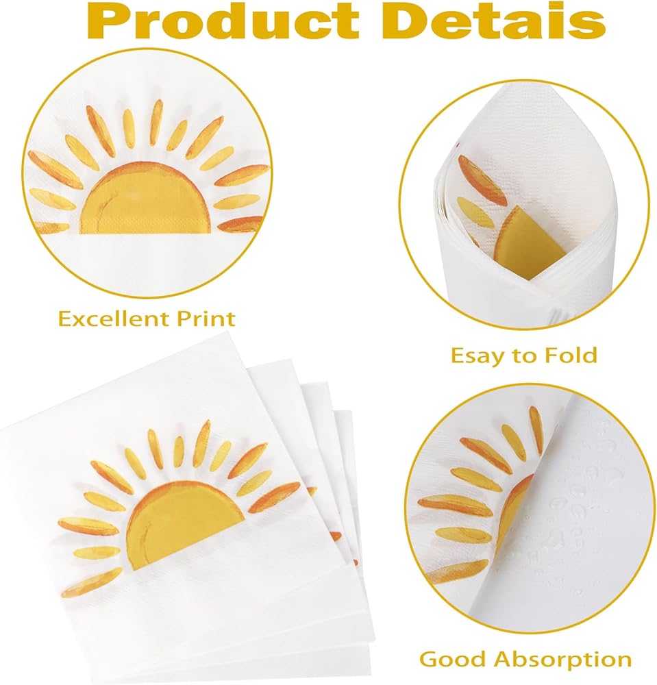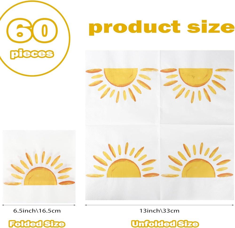 60Pcs Boho Sun Paper Napkins Sunshine Napkin Disposable First Trip Around The Sun Cocktail Dinner Napkins for Birthday Baby Shower Party Supplies Birthday Decorations (13" x 13")