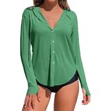 Unique Styling Design: The long sleeves provide extra hand protection, and the curved hem adds a fashionable touch to your swimwear. The button design adds convenience for easy wearing and matching