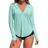 Relaxed and Casual Fit: Designed with a loose and relaxed shirt-style silhouette, our rash guard shirts are inclusive for all body types,creating an effortlessly casual and chic style