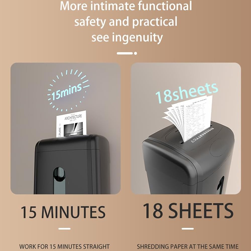 --18 Sheet Large Capacity: Max can shred 18 sheets A4 80g paper,credit card,paper,staples,clips all can be shredded.