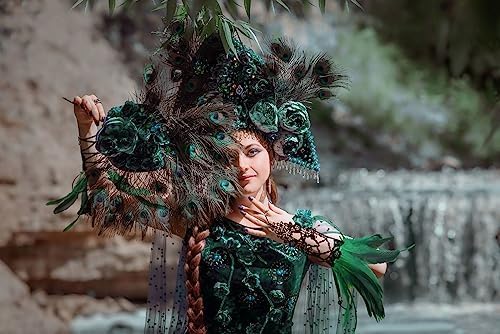 Gothic Black Lace Feather Fingerless Gloves with Long Sleeves Wrist Cuffs Women's Costume Accessory