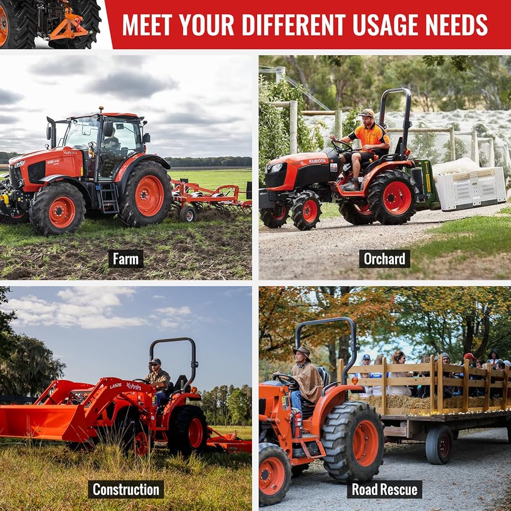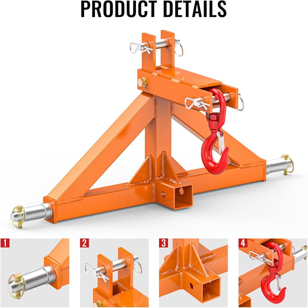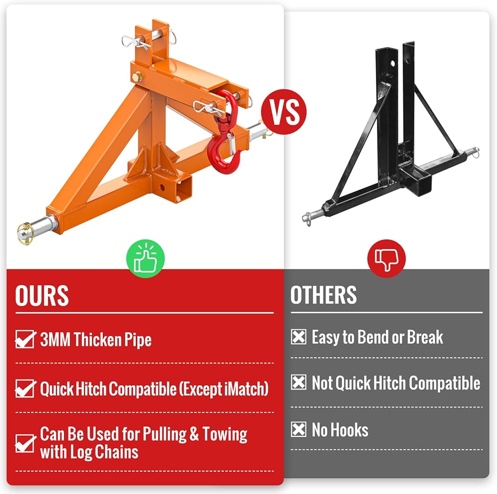 Quick Hitch Compatible: SUNSHINE FARMRE 3 point trailer hitch receiver is compatible for category 1 tractors and category 1 quick hitch. The receiver uses a standard 2" receiver that fits moving around trailers and other implements. Widely used in heavy duty work of industrial and construction business. It fits for small, sub-compact, compact tractors like BX, Kubota, LM25H, WLM Tractor, NorTrac, Kioti, Yanmar, Cat and John Deere.