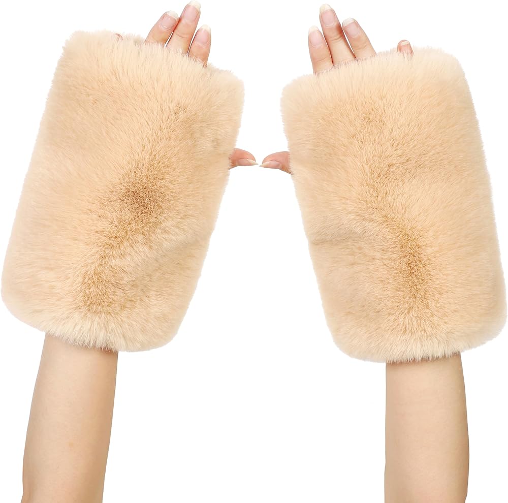 ONE SIZE: An one-size faux fur glove is suitable for most ladies and girls, and the fur cuffs are attached with elasticity. It's 8.26 inches long and 5.3 inches wide