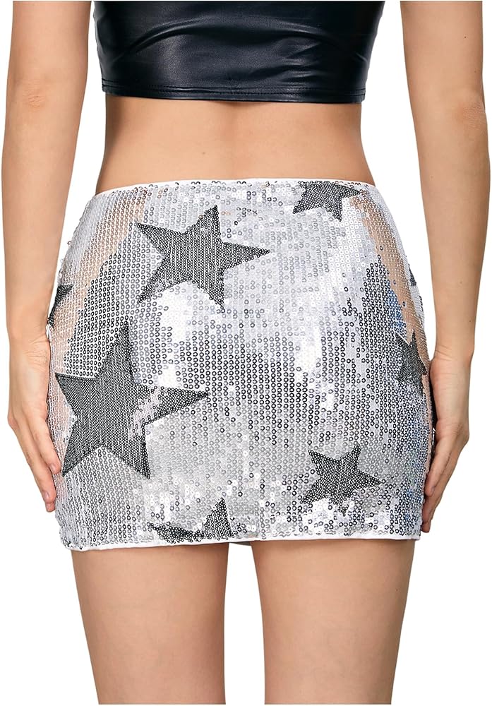 SHENHE Women's Sparkly Sequin Low Rise Rhinestone Bodycon Sexy Mini Skirt Party Skirt