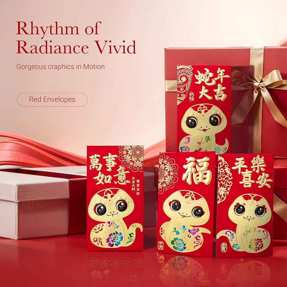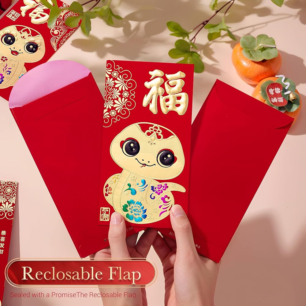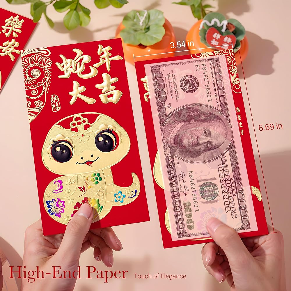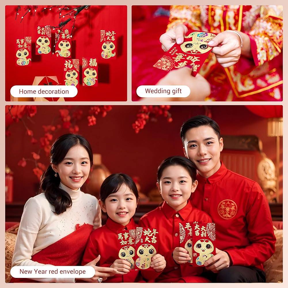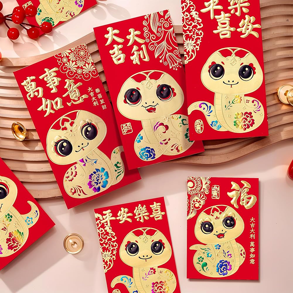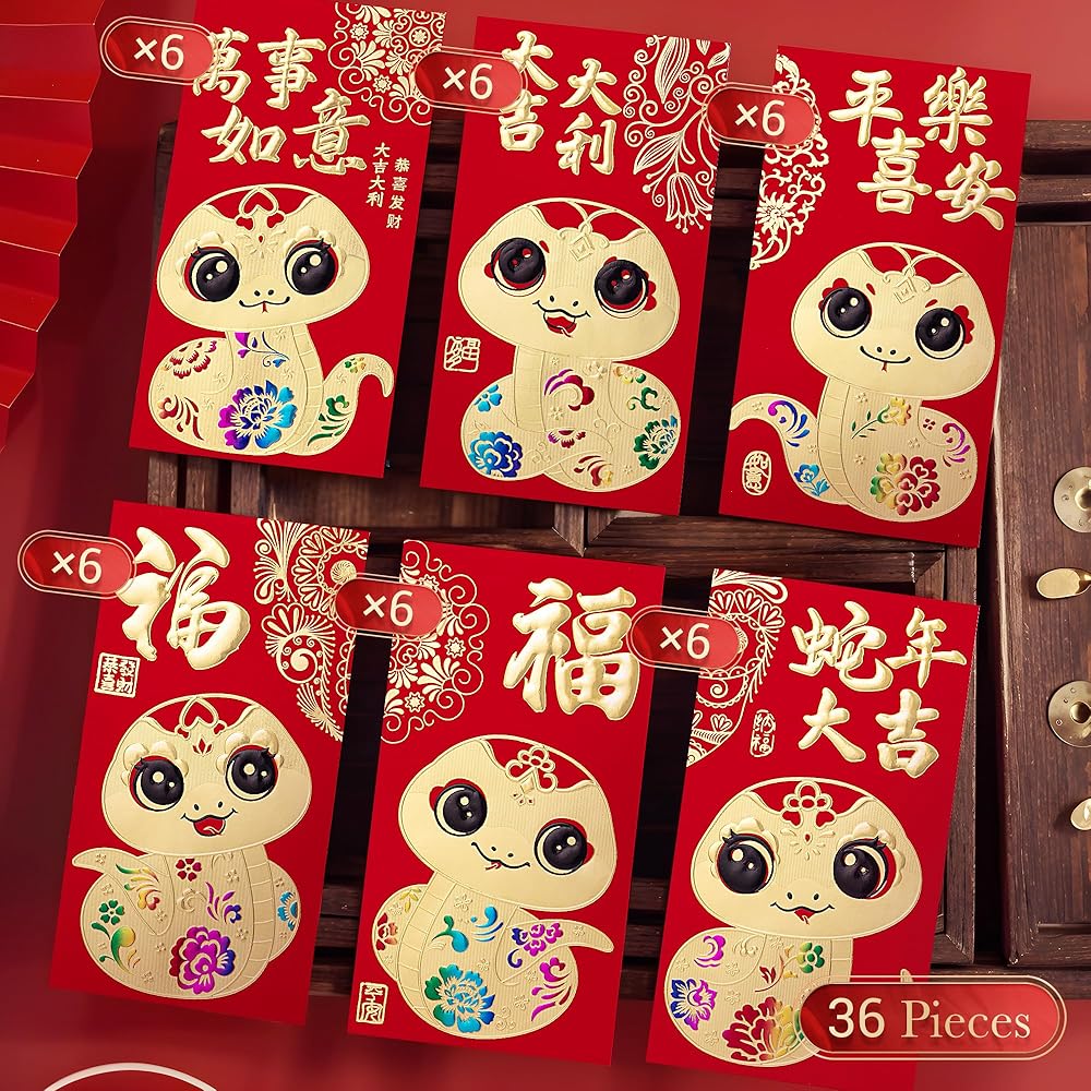 • VARIETY PACK: Enjoy a diverse collection of 36 pcs of Chinese red envelopes, each adorned with one of 6 unique designs, specially crafted for the Year of the Snake 2025. Celebrate in style!