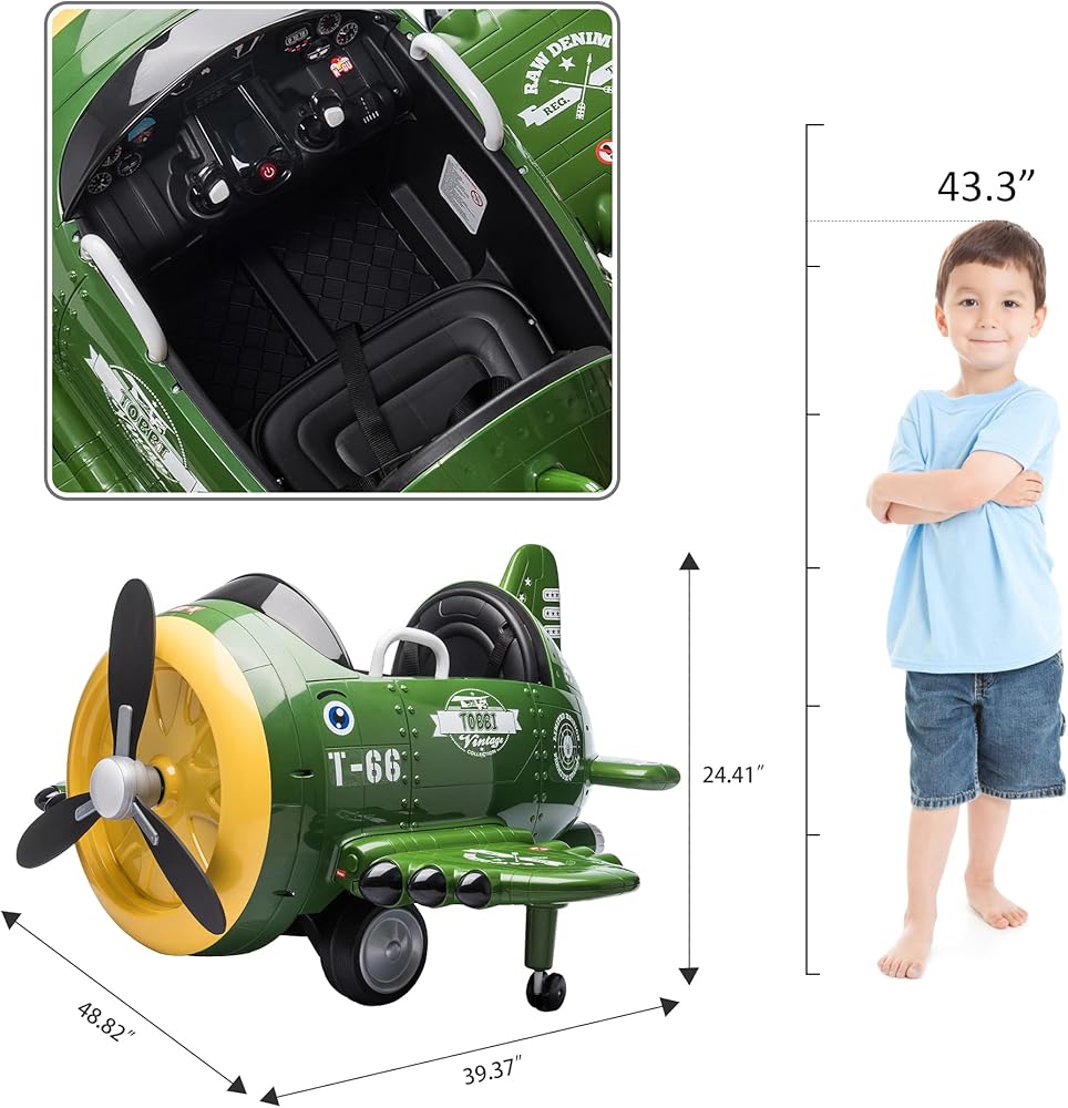 🛫【FM RADIO & BOMBING SOUND】: This kids electric fighter plane car is equipped with simulated sound of bombing, adjustable volume, FM radio, and USB music input, allowing your little adventurers to play their own tunes driving plane correctly