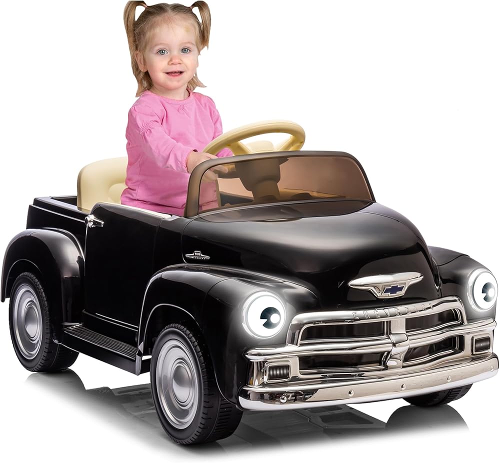 12V Kids Ride On Car, Licensed Chevrolet 3100 Pickup Battery Powered Electric Vehicle with Remote Control, Spring Suspension, Led Light and Music for Toddler Boys Girls 3-8