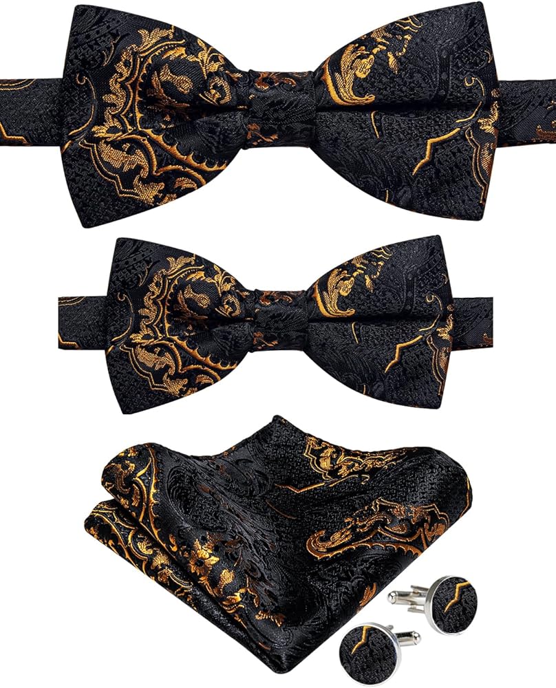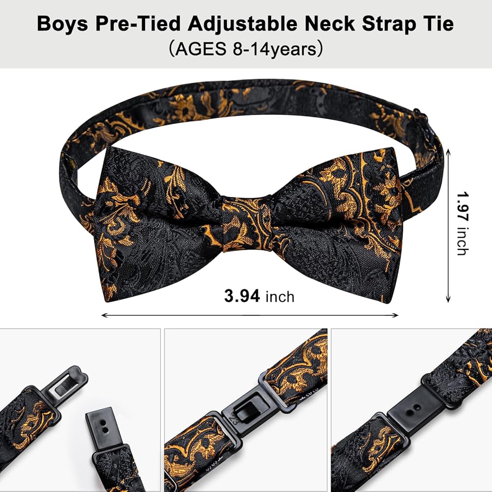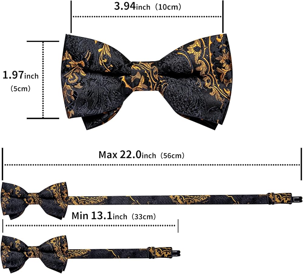 【CLASSIC SIZE】Mens Bowtie size: 4.72 inches x 2.36 inches.Adjustable Neck Size: 11.81 inches - 22.44 inches,Pocket Square size: 9 inches x 9 inches,Cufflink Diameter:0.55 inches. Boys Bowtie size: 3.94 inches x 1.97 inches. Adjustable Neck Size: 13.1 inches - 22 inches, Pocket Square size: 7.87 inches x 7.87 inches.Boy's bowtie suitable for 8-14 -year-old boys