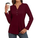 Features: This henley tunic features a stylish notch V-neckline, button-up front, long sleeves, and a flattering length. Its unique and fashionable design will enhance your charm and attractiveness.