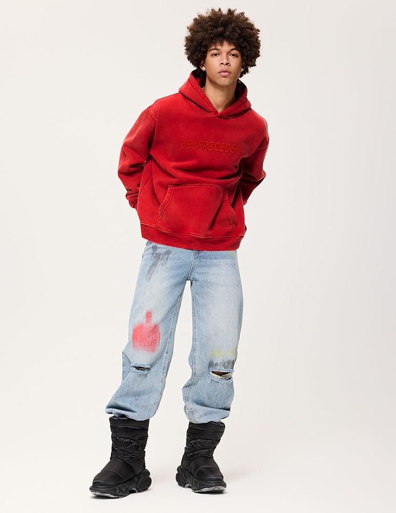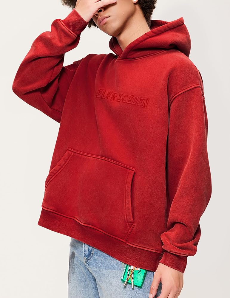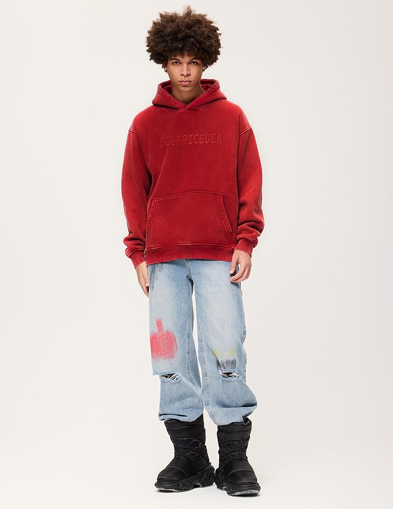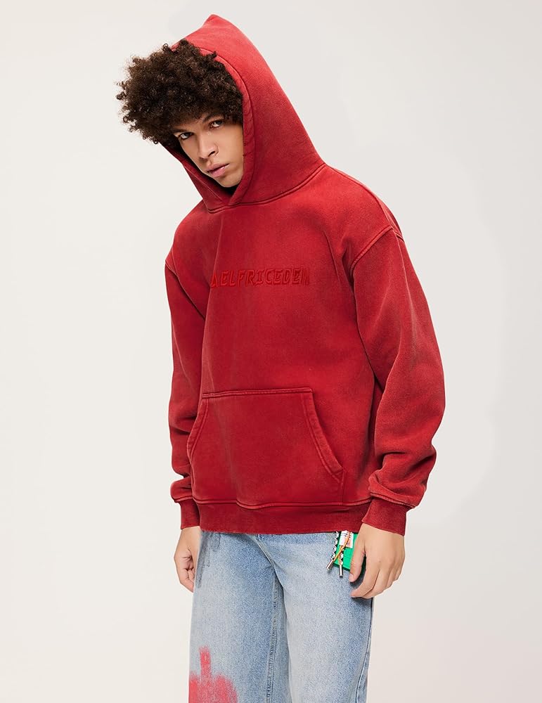 Design: Acid wash hoodie, cotton fleece, embroidery brand logo letter print, kangaroo pockets, hooded neck, ribbed cuffs and hem, long sleeve, pullover sweatshirts