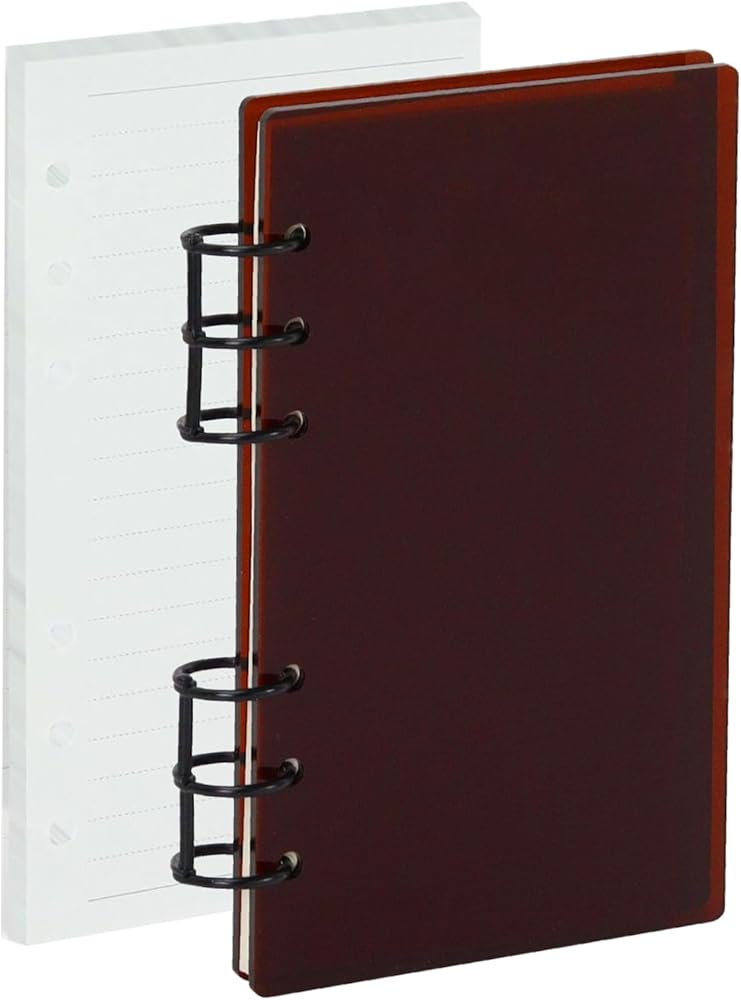 Mulitbey A6 Classic Red Tea Acrylic Binder, 6-Ring Notebook Cover with 90 Sheets Refill (45 Lined + 45 Blank), Black Round Rings, A6 Loose Leaf Binder Planner & Journal for Organization
