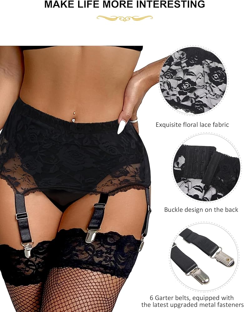【High-Quality Material】This plus size garter belt made of lace mesh main fabric, breathable and comfortable. Exquisite lace floral pattern, fashion and elegant. Fabric has some stretchy, great for plus size women.