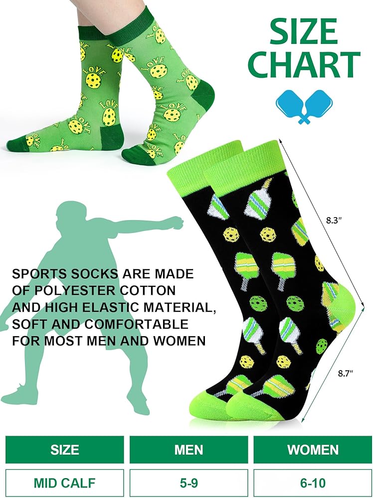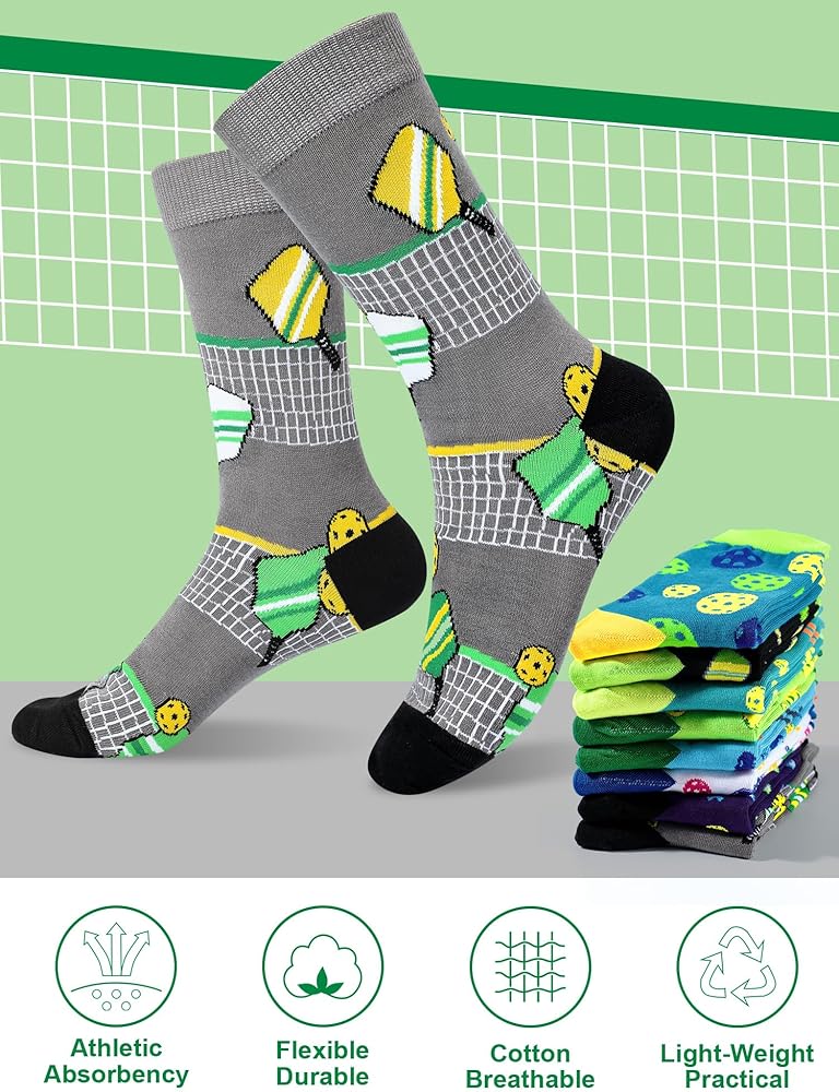 Versatile Application: whether you're on the Dink ball competition or off it, our novelty crew socks make the right style statement; The playful dink ball patterns render them a suitable choice for both serious gaming and fun post game moments; Plus, their versatile charm makes them an ideal gift option, a gift that screams fun, style, and sportsmanship