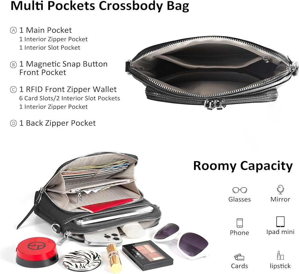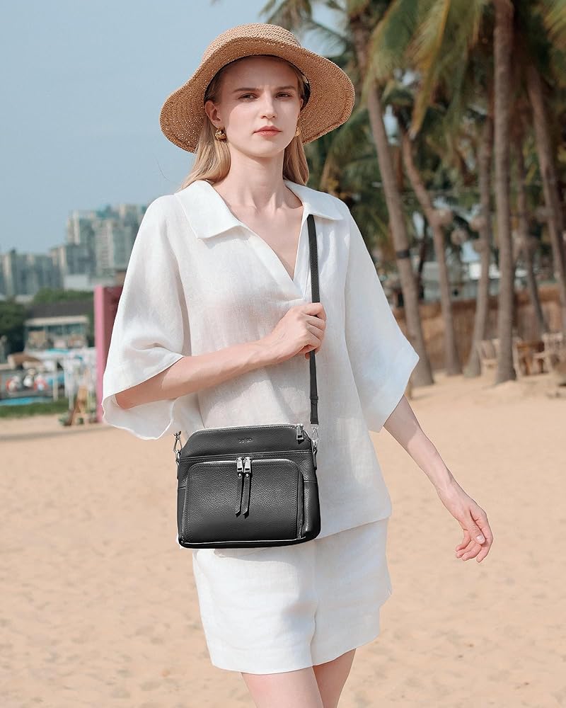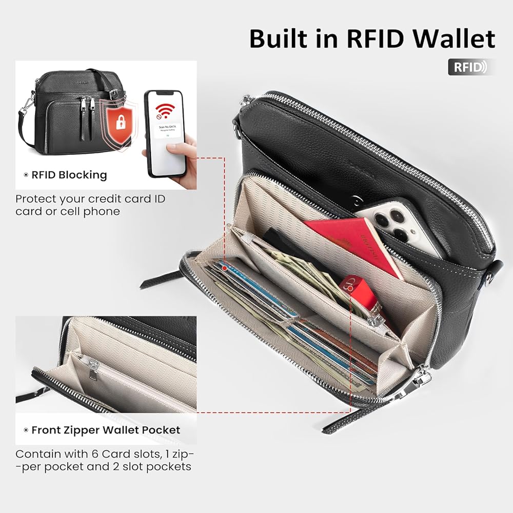 Crossbody Bag with Built-in RFID Wallet: Made from full real leather, this Befen purse offers both the functionality of a crossbody bag that keeps your essentials well organized, and a RFID wallet providing added security against digital pickpocketing