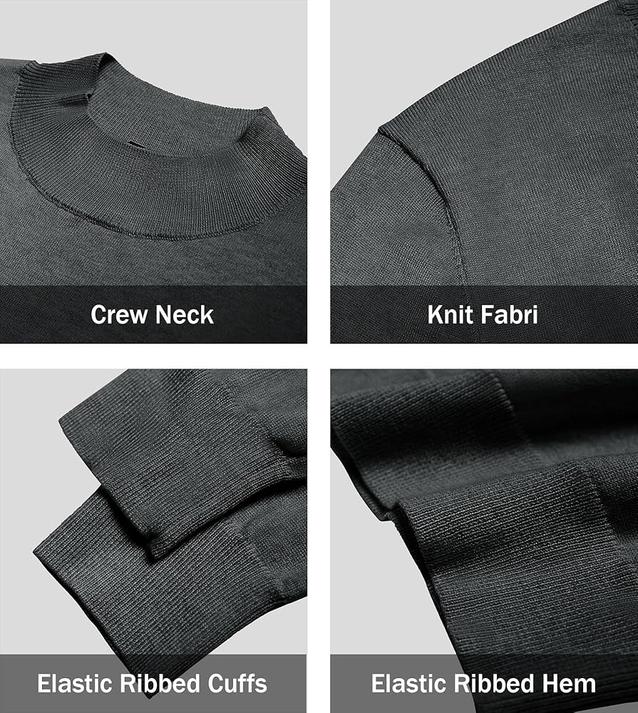Crewneck - Turtleneck, slim fit, classic and casual style, long sleeves, solid color, and ribbed base. These modern basic designed men's turtleneck long sleeve shirts are perfect for any occasion.