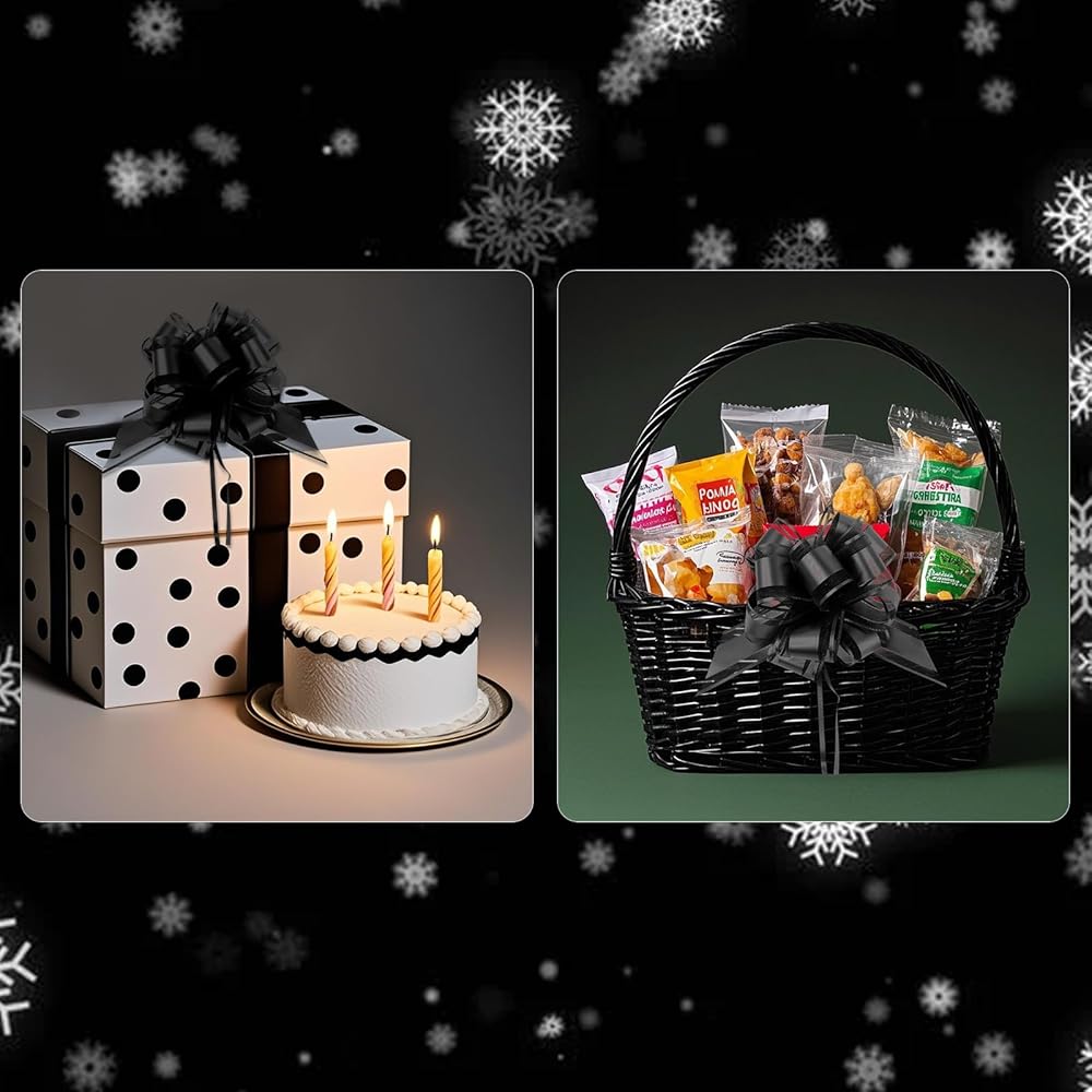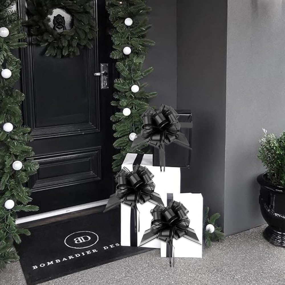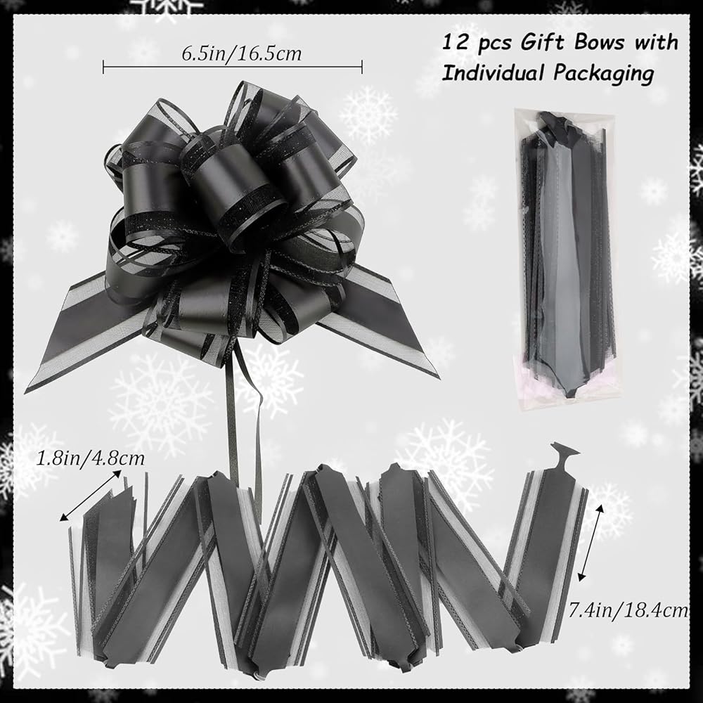 Black Bows for Gift Wrapping Pull Bows 12 Pieces 6 Inch Ribbon Bows, Graduation Birthday Baskets Bouqets, Xmas Decorations