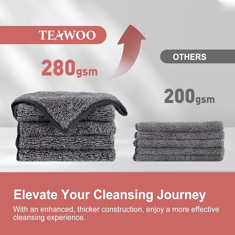 【Super Absorbent】 TEAWOO microfiber cleaning cloths quickly soak up moisture and dry rapidly, making them ideal for both automotive and household cleaning tasks. They efficiently remove dirt, grime, and liquids with ease.