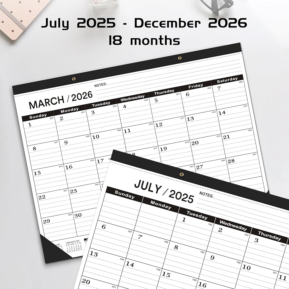 🔲【Extra Large Calendar】The desk calendar 2025-2026 runs from January 2025 through June 2026.Featuring 18 months for long planning,the desk calendar 2025-2026 overall size is 22" x 17" and each block is 3.1" x 2.3" wall calendar 2025 for daily use.Monthly 2025 calendar with large grid,big print is perfect for group scheduling or seniors.