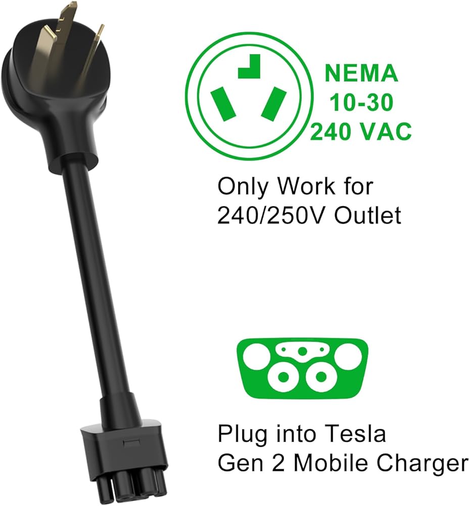 EVCONN 16" NEMA 10-30 Adapter for Gen 2 Mobile Portable Charger, Up to 24 Amp, Work for 240/250V Outlet, Compatible with Tesla 3/S/X/Y (Not Compatible with pre-2018 Model S/X Vehicles)