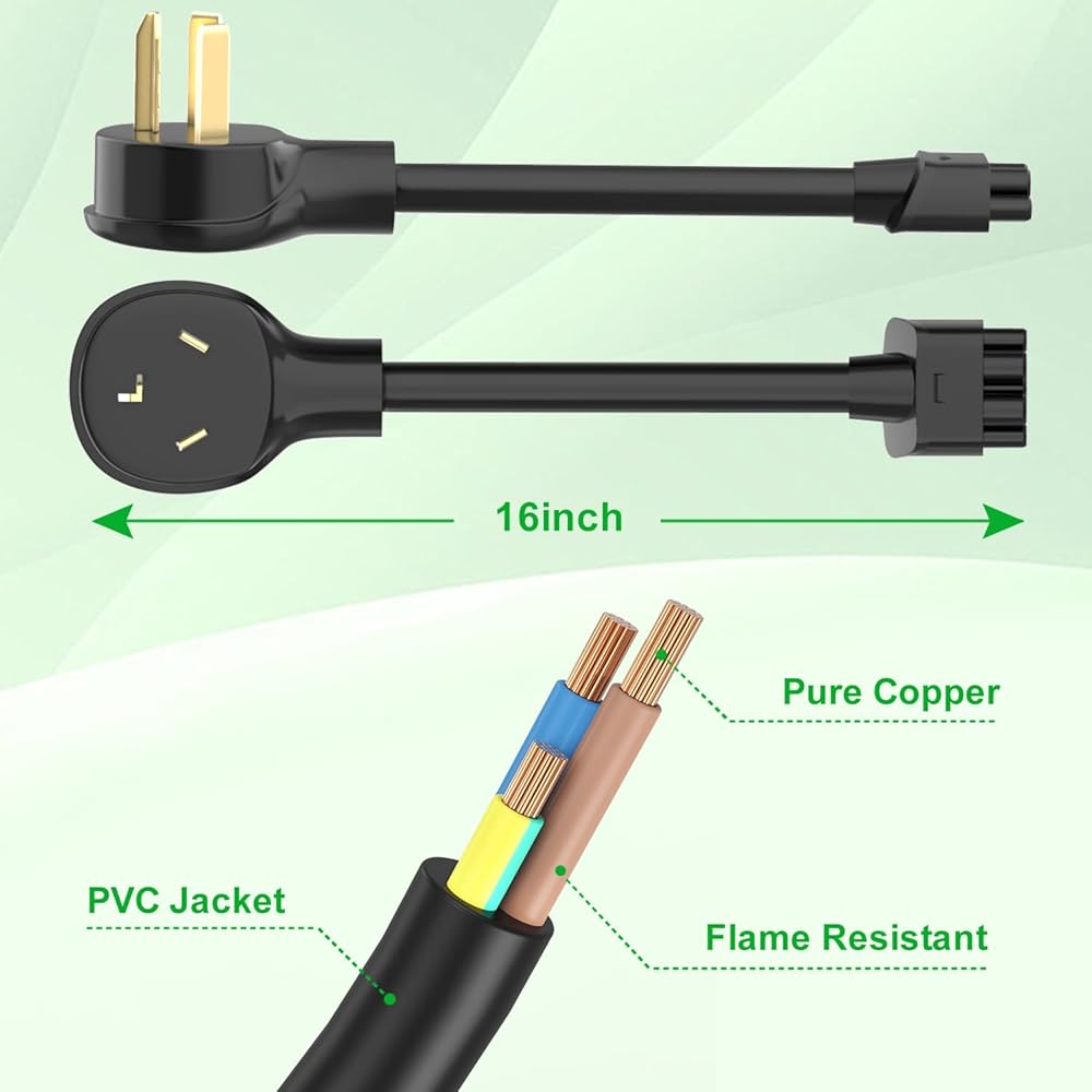 16" NEMA 10-30 Adapter for Gen 2 Mobile Portable Charger, Up to 24 Amp, Work for 240/250V Outlet, Compatible with Tesla 3/S/X/Y (Not Compatible with pre-2018 Model S/X Vehicles)