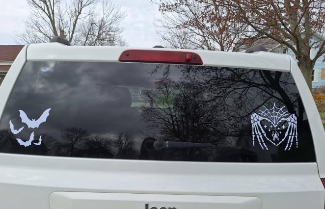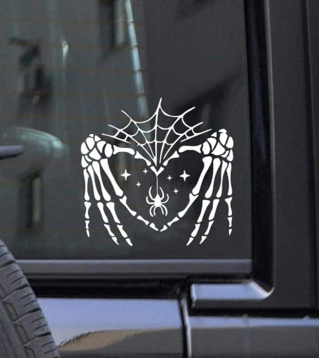 Unique Design:These halloween white spider web and love skull hand car stickers are not only suitable for auto rear windows and bumper but can also be used to decorate laptops, walls, vehicle windows, and mugs, adding a personal touch and fun to your items.