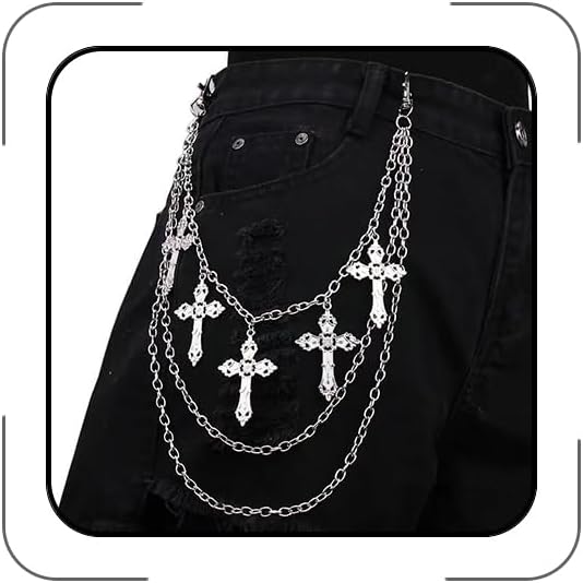 Punk Pants Chain Hip Hop Butterfly Cross Sword Star Rivet Charm Layered Jeans Chains Wallet Chain Vintage Rock Chains for Women Men Halloween Jewelry Clothing Accessories