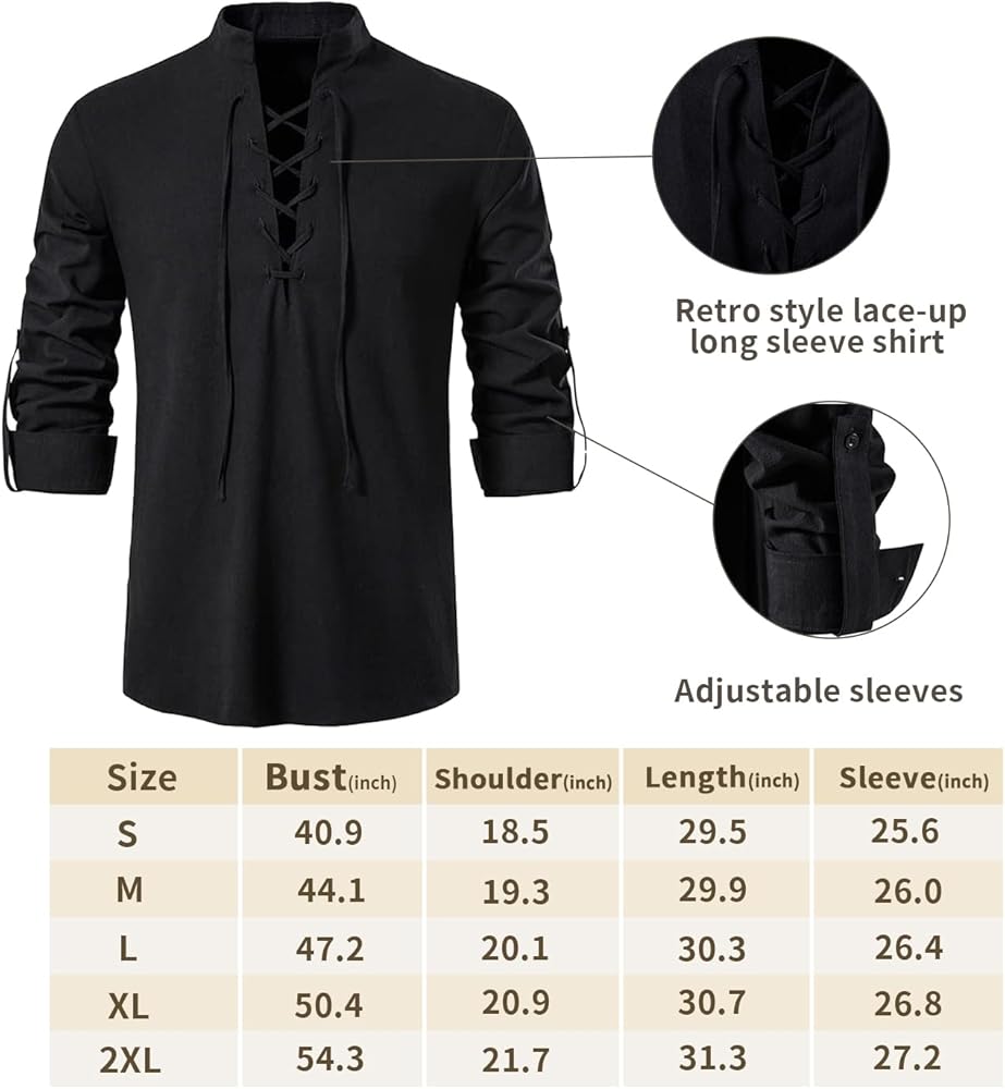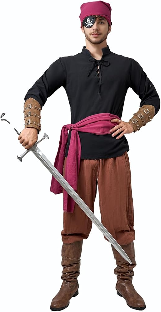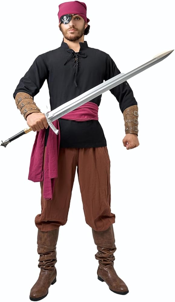 Renaissance Inspired Design: Featuring drawstrings on the shirt and pants for adjustable necklines and cuffs, this medieval costume brings you to the renaissance period; This men's pirate costume set lets you embody the spirit of the era and offers an authentic and historical look