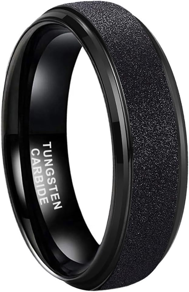 6mm 8mm Sandblasted Finish Black / White / Gold and Rose Gold Tungsten Carbide Rings for Men Women Promise Engagement Wedding Bands Fashion Jewelry Stepped Beveled Edges Comfort Fit.