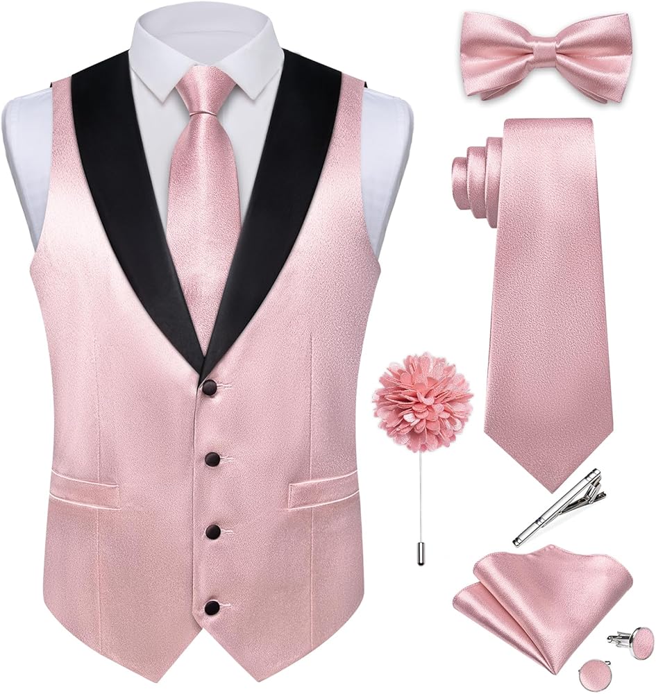 【Purchase Contains】Satin Green Shawl Collar Waistcoat+Tie+Pre-tied Bowtie+Lapel Pin Brooch+Tie Clip+Pocket Square+Cufflinks. Meet your dress requirements for attending different occasions with family, loved ones, friends, etc
