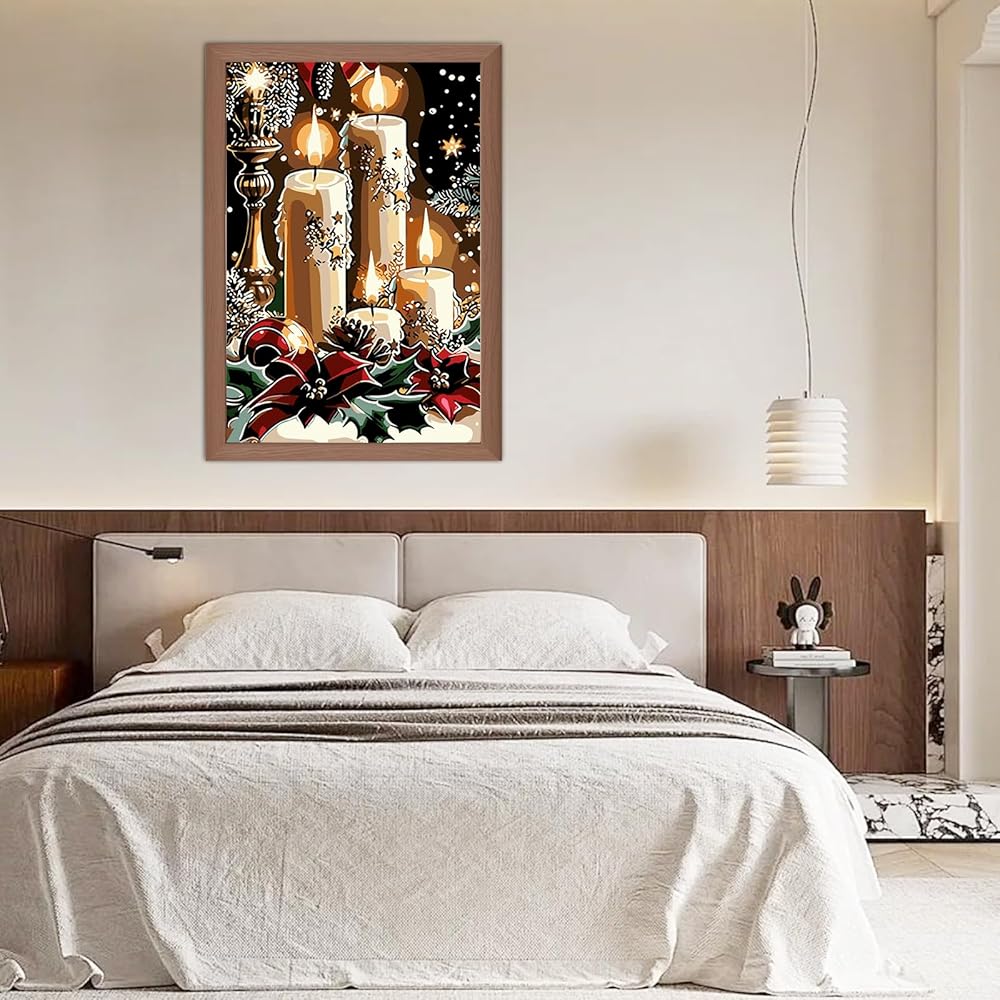 SENQAO Framed Paint by Numbers Kit for Adults Beginners with Wooden Easel, Christmas Candles Easy Paint by Number Kit with Frame, Watercolor Adult Paint by Number Framed Canvas 7.8x11.8inch