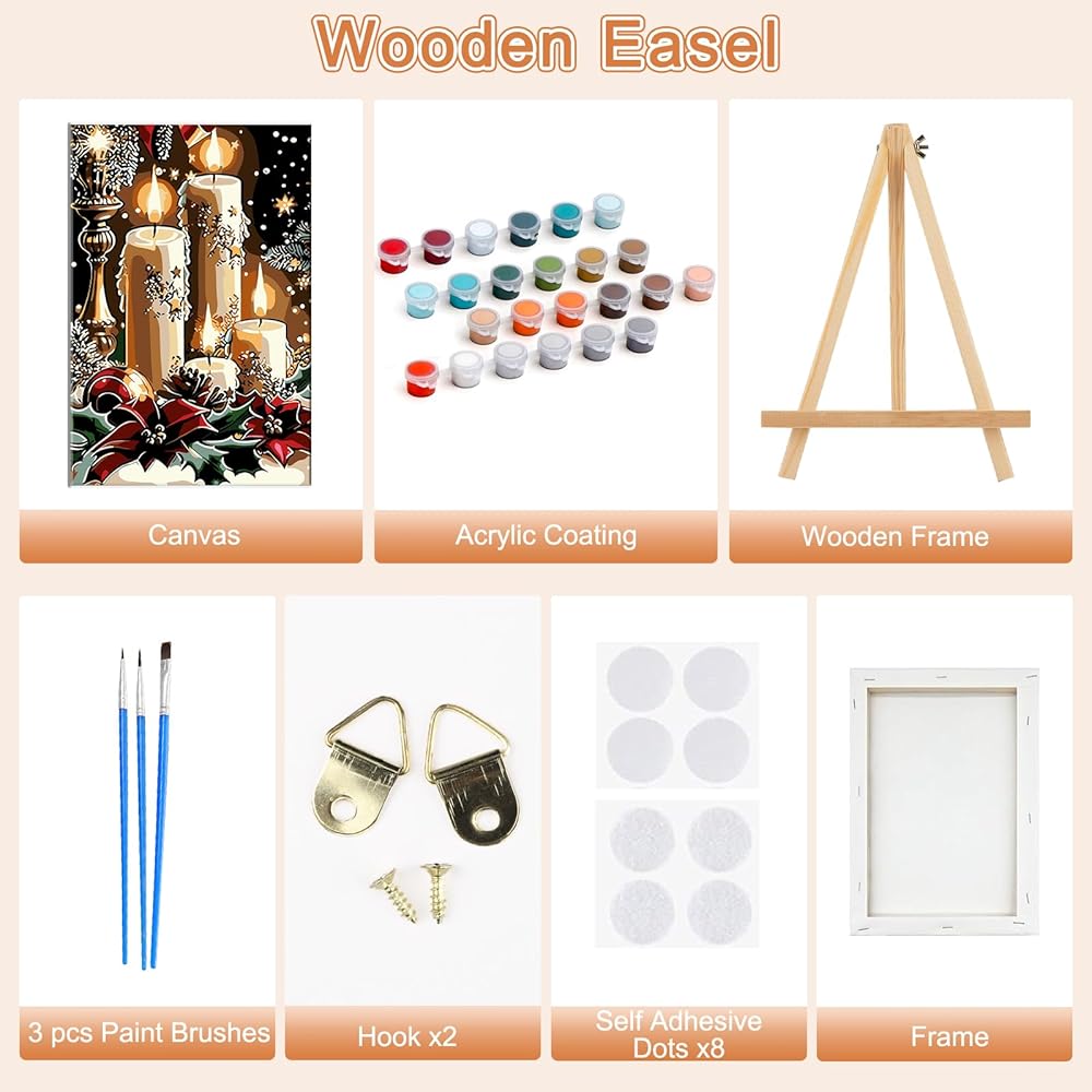 Package Include: Paint by Numbers for Adults Framed Canvas comes with everything you need. The paint by number kit includes pre-printed textured art canvas (framed) with wooden easel, matched acrylic paints and nail hooks and the required screws