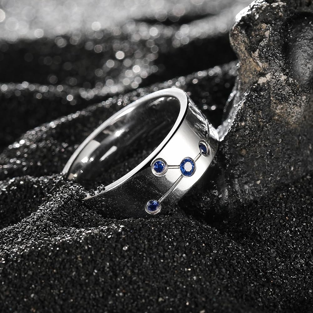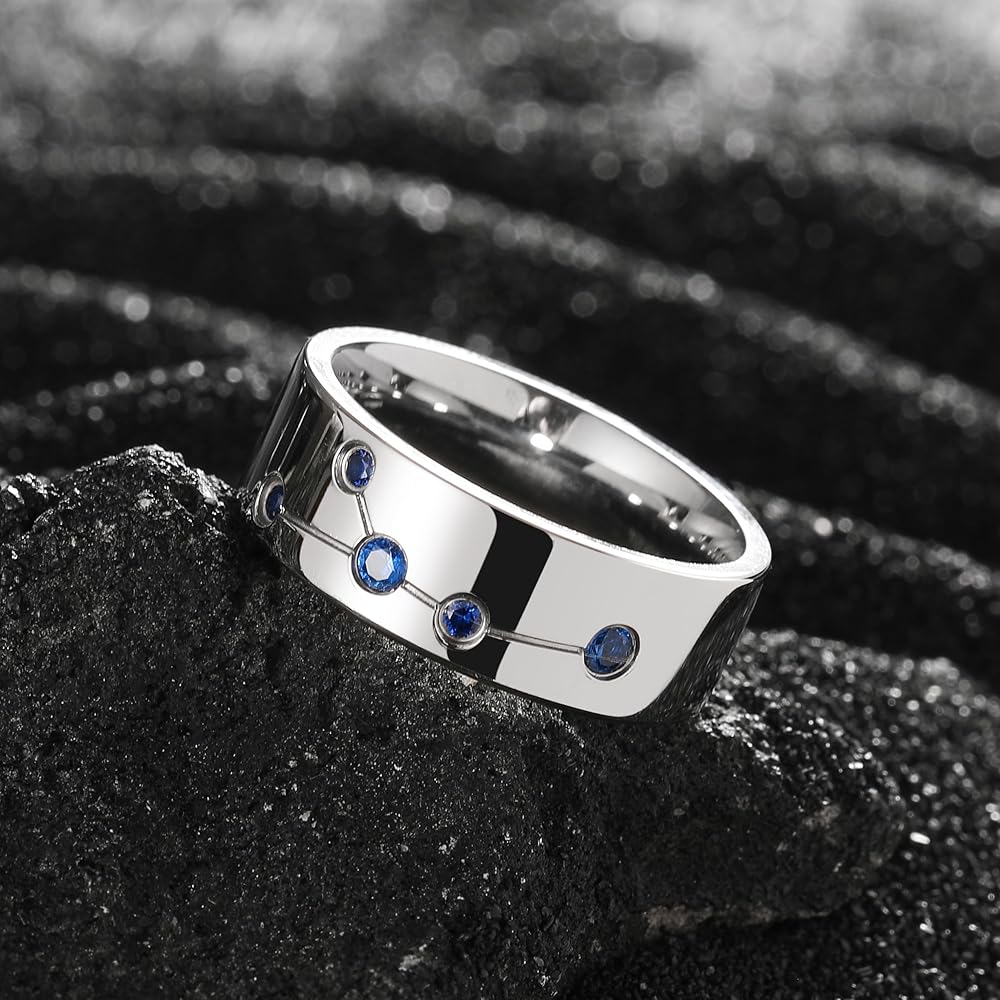 King Will Constellation Design Wedding Band for Men Women-8/10mm Width with Blue/Red/Green Cubic Zirconia Inlaid Unique Wedding Ring,Comfort Fit Size 7-14