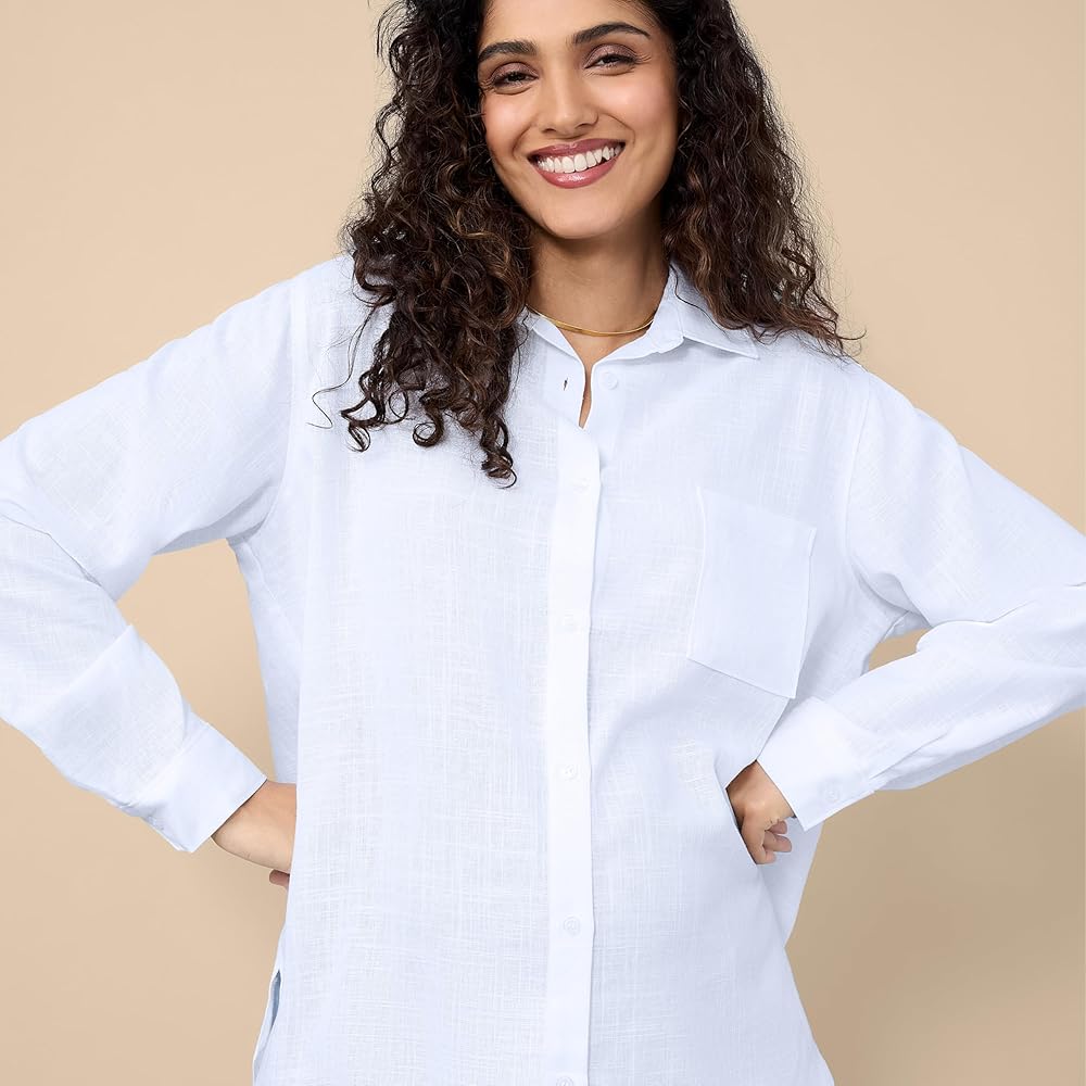 CLASSIC OVERSIZED FIT: Designed for maximum comfort and style throughout your pregnancy, featuring breathable poplin construction.