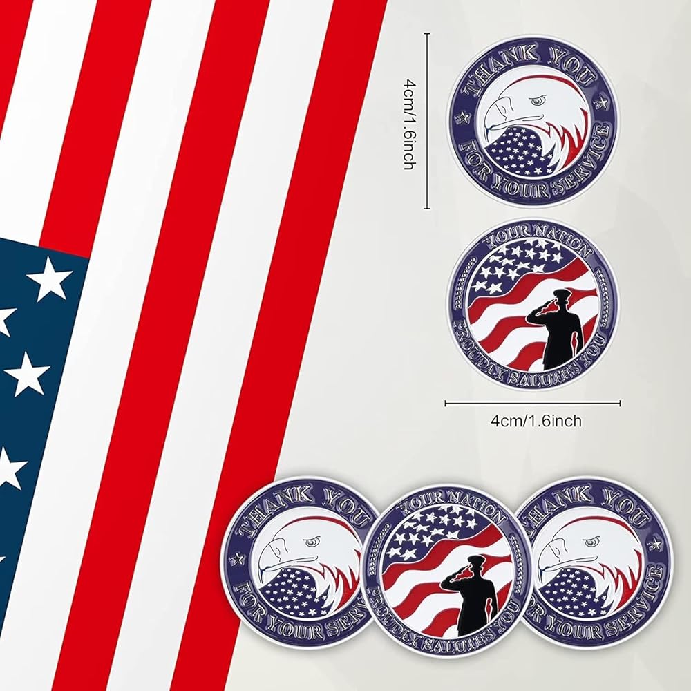 Use these coins to thank our veterans for their service and sacrifices to our country and for keeping us safe.You can also send these thank you for your service gifts to your parents, employees, coworkers and teachers, they can also be applied on anniversaries, Veterans Day, Independence Day.