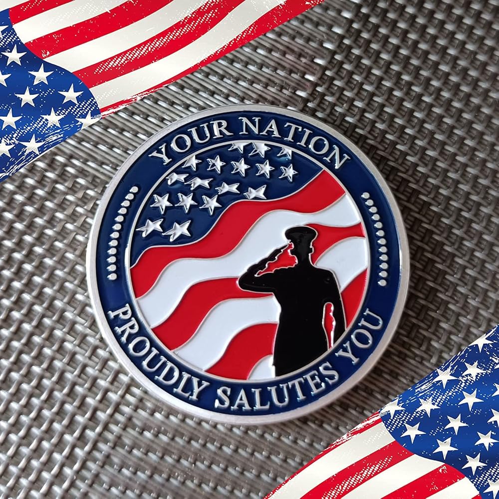 You can express your gratitude for troops from all services.The military challenge coins are double-sided designed,the front says, "Thank You For Your Service”, the back says, "Your Nation Proudly Salutes You".