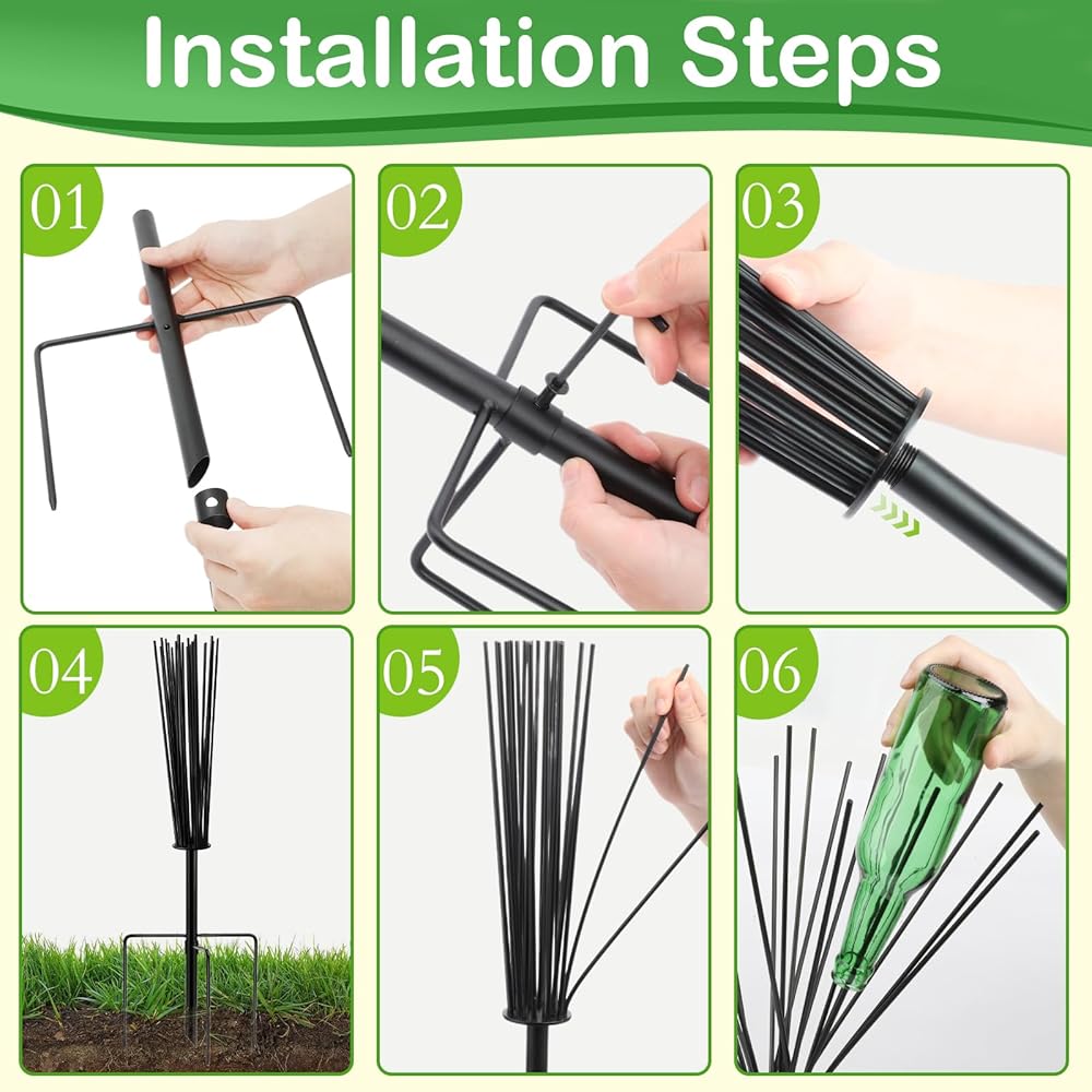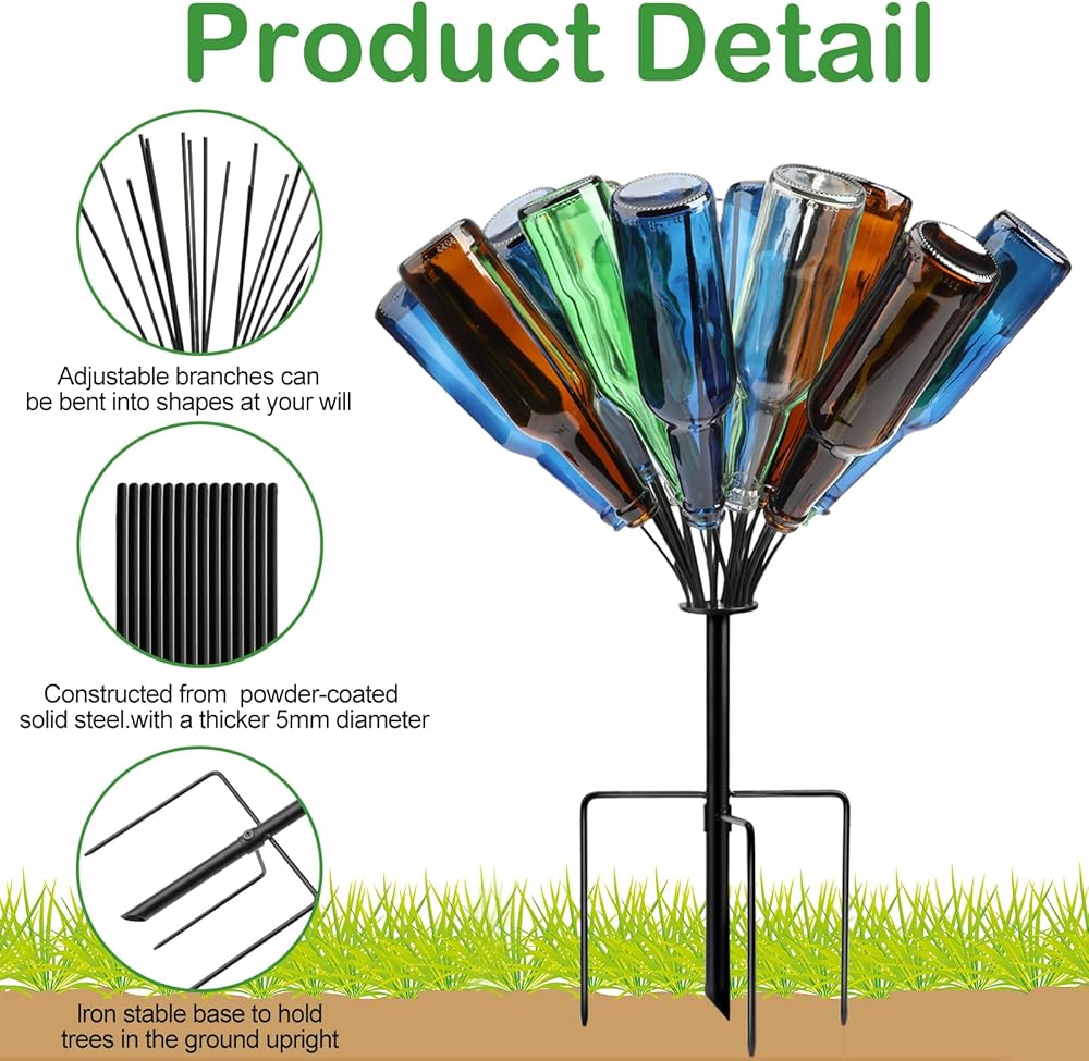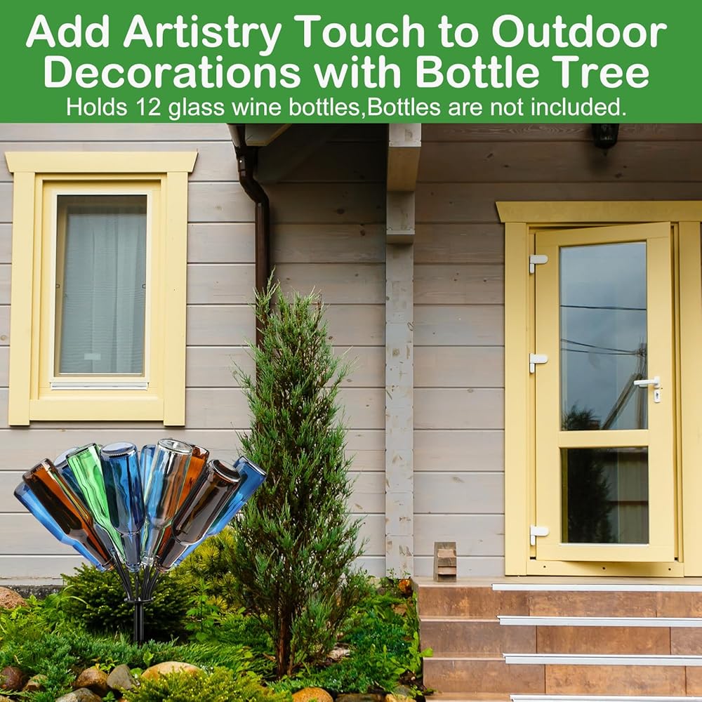Package Contents: Enhance the charm of your garden with this sophisticated outdoor metal wine bottle holder, perfectly crafted to accent any landscape. Each bottle holder features 12 elegantly designed branches to display your empty wine bottles (bottles not included), adding a touch of sophistication and vintage flair to your outdoor oasis