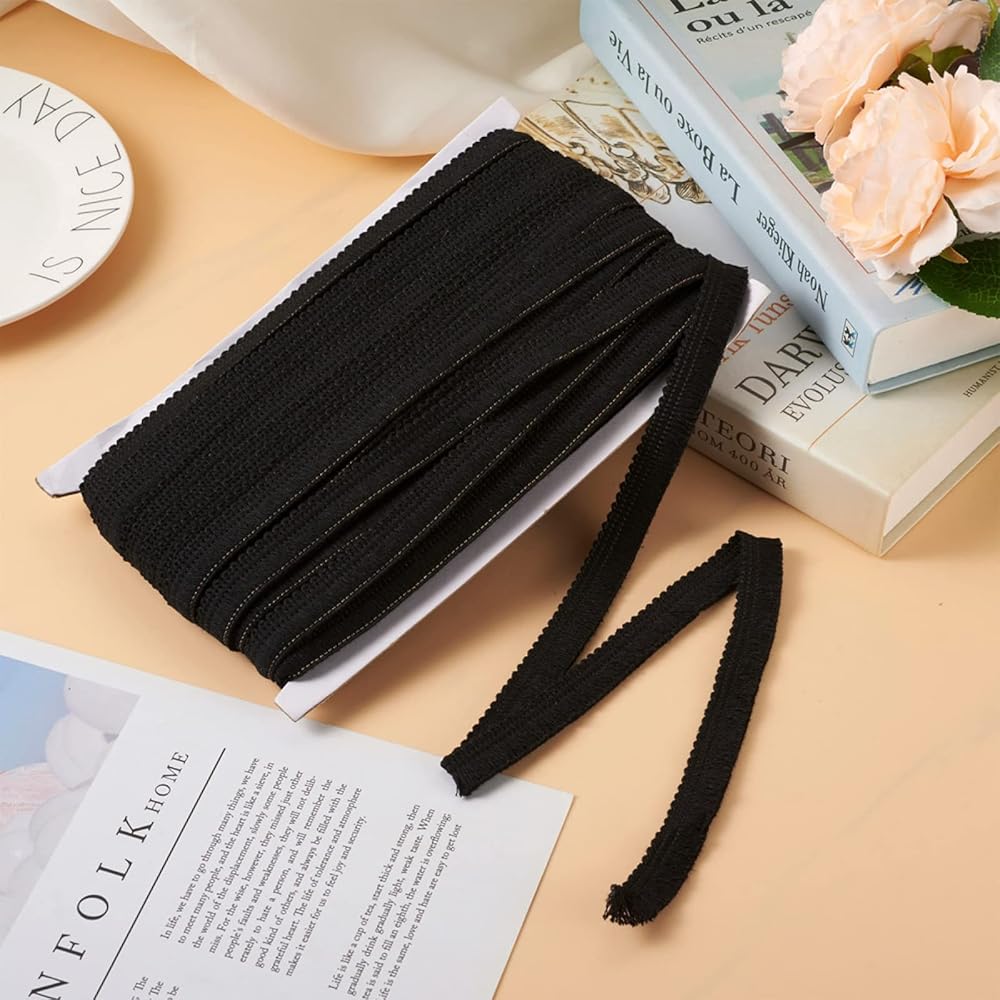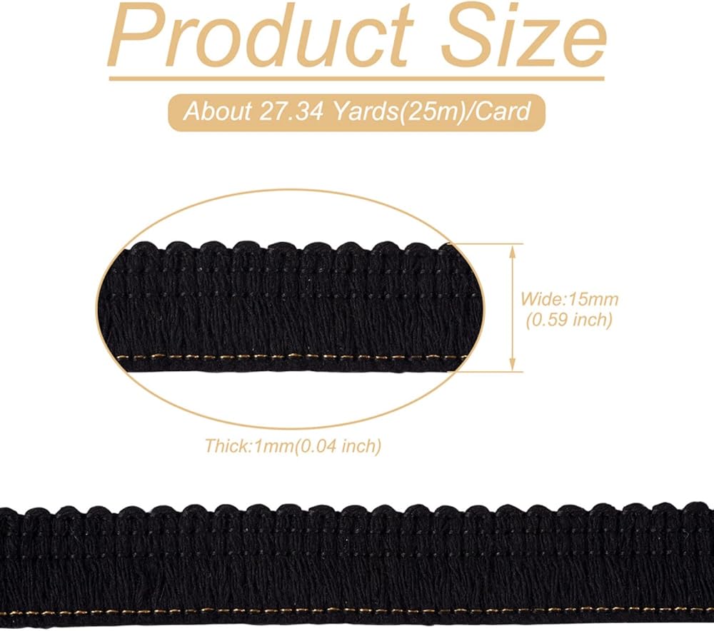27.34 Yards/25cm Black Polyester Fringe Tassel Lace Trim 5/8 Inch Cotton Braided Ribbons with Paper Card Fringe Fibre Trim for Clothes Sewing Furniture Decor DIY Tassel Jewelry Making